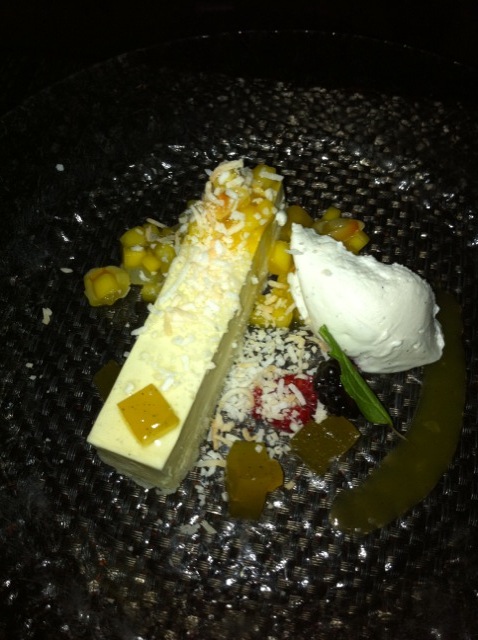 For dessert we ordered the passion fruit mousse cake (pineapple and citrus salad) and the dark chocolate sponge cake. Now I love chocolate, but the passion fruit mousse cake? hoooly cow… it was amazing. when you first bite into it, you get a tart flavor followed by a sweet after taste. Simply delicious.
