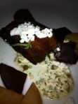 We started with the gala apple & endive salad (whipped salt spring island goat cheese, pecan vinaigrette) and the crispy Fraser Valley pork belly (warm beet salad, gribiche dressing)