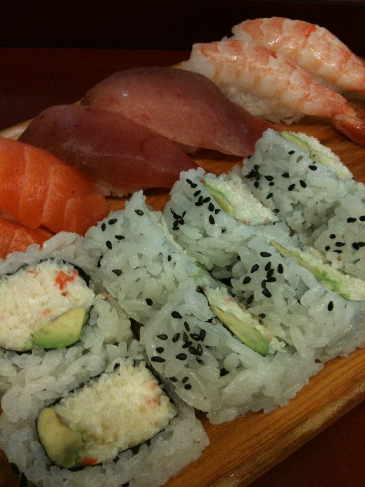 I had the California Combo ($8.99) and it consisted of 2 pieces each of tuna, salmon & ebi sushi and a California Roll. Not a bad deal for a lot of food. And it was very good and very fresh.