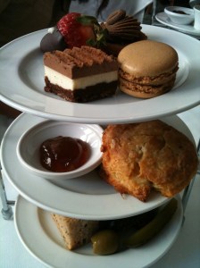 Our Petite Afternoon tea service included 3 mini sandwiches (egg salad, salmon and cream cheese watercress) a scone with Devonshire cream and assorted pastries. The presentation is just beautiful and elegant. The food is delicious. The flavours are subtle and enhance the tea experience. My favourite was the smoked salmon. And I loved the scone. It was different from the scones I’m used to. Usually scones are soft and crumbly. This one came with a hard crust that was sprinkled with sugar. It had a rock sugar like consistency. Very tasty. The pastries were a perfect serving for our tea service. works of art in miniature and each delicious.