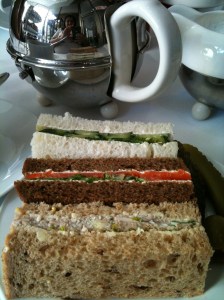 The tea room is as elegant as their tea service. Modern photographs of faraway places grace the walls. There is a small water fountain created with tea pots in the centre of the room. Beautiful clean linens, and tasteful surroundings make this an experience worth repeating over and over again.