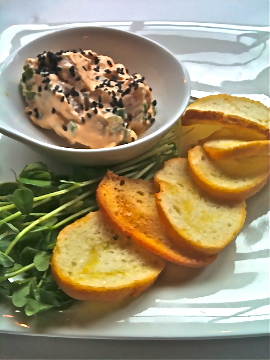We continued our dinner with the Tuna Nigatoro (tuna belly in a japanese mayo/rice wine sauce) this dish was very good, but a bit too heavy for my taste. I also had a hint of spice. We had the Calona Chardonnay as a wine pairing.