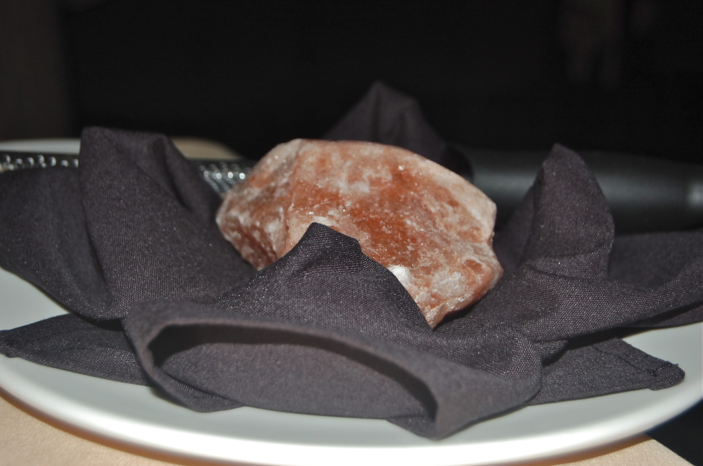 Another neat thing: Instead of salt brought to your table, they bring out Bolivian Rock Salt – it looks like a crystal and they shave it right in front of you.It’s lower in sodium and better for you. It’s a nice touch.