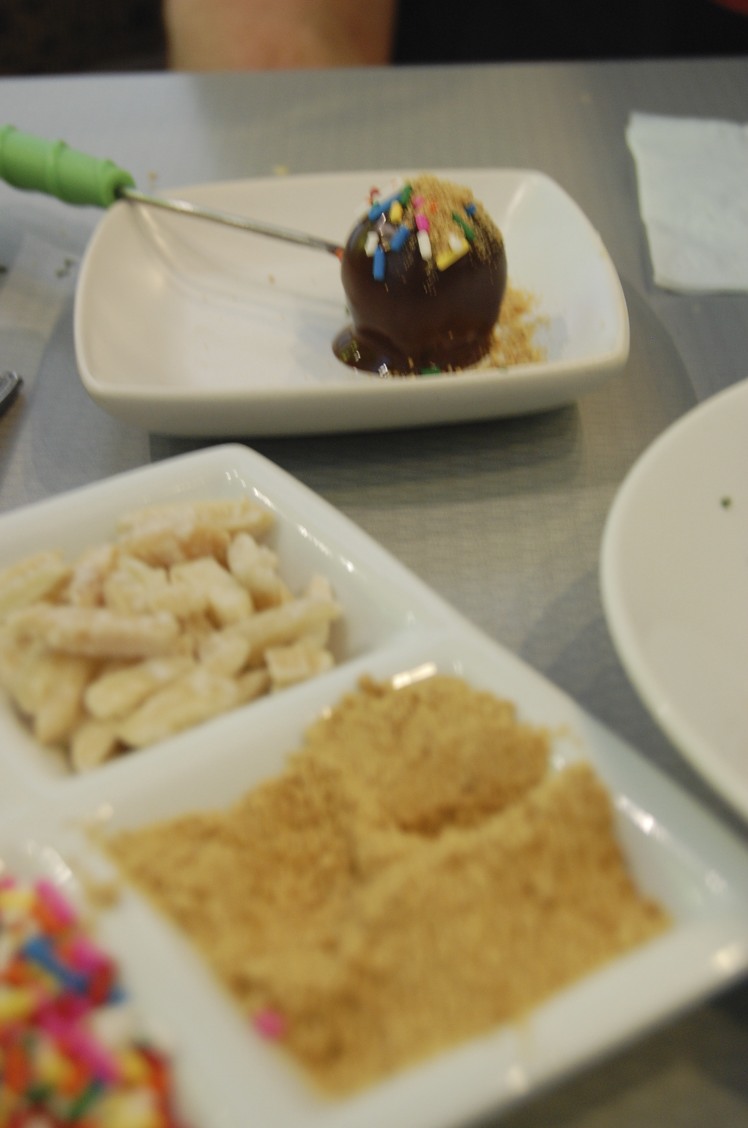 Once you dip on the soft chocolate, it would harden, making them perfect ice cream truffles! The fondue also came with an assortment of dry toppings (nuts, sprinkles, coconut shavings) It was a lot of fun trying different combinations (and a little messy too).