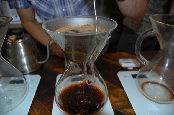 Revolver takes coffee to a whole different level: Each cup is made individually and ground by hand. Each different coffee gets its own type of brewing method. They carry coffees from different regions, I was surprised that they even carry coffee from El Salvador. That’s where I’m from.
