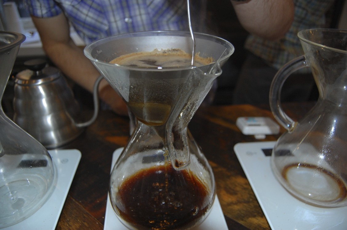 It takes approximately two and a half minutes for your coffee to brew. Watching them brew that perfect cup of coffee is really cool. There are a few things to keep in mind: The water temperature, and the ratio of coffee to water. Those things will determine how rich your coffee will taste.