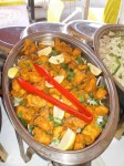 The Lunch Buffet included a large selection of Vegetarian and Non-Vegetarian Entrees with Tandoori Breads, Basmati Pulao Rice and a fresh assortment of Salads and Condiments. Today they were featuring Karma Aloo (Sauteed baby red potato wedges served over a chilled tomato and garlic reduction), Malabar Vegetables (Medley of veggies in a richly flavored coconut garlic sauce), Curry Chicken, Tandoori Fish, Tandoori Chicken, Indian Caesar Salad, Chana Kachumber Salad (Seasoned chick peas, diced cucumbers, peppers, carrots and tomatoes, in a lemony coriander dressing), Basmati Rice, fresh Honeydew, Naan & the best dessert of Kheer (Traditional rice pudding) among other items.