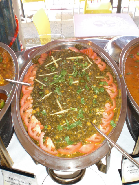 The Lunch Buffet included a large selection of Vegetarian and Non-Vegetarian Entrees with Tandoori Breads, Basmati Pulao Rice and a fresh assortment of Salads and Condiments. Today they were featuring Karma Aloo (Sauteed baby red potato wedges served over a chilled tomato and garlic reduction), Malabar Vegetables (Medley of veggies in a richly flavored coconut garlic sauce), Curry Chicken, Tandoori Fish, Tandoori Chicken, Indian Caesar Salad, Chana Kachumber Salad (Seasoned chick peas, diced cucumbers, peppers, carrots and tomatoes, in a lemony coriander dressing), Basmati Rice, fresh Honeydew, Naan & the best dessert of Kheer (Traditional rice pudding) among other items.