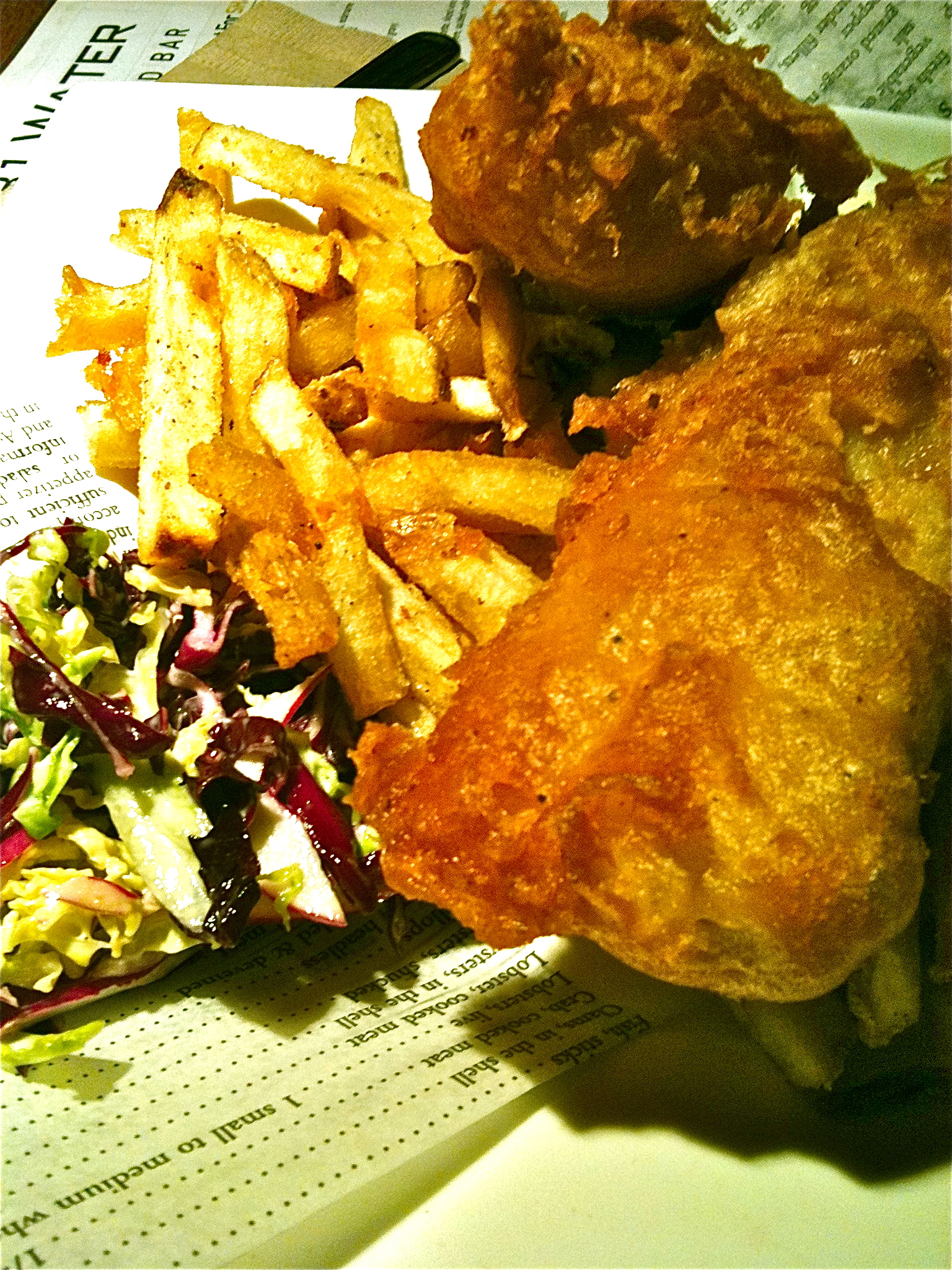 A couple of things they are noted for are: Their fish and chips ($9.95) – beer battered haddock fish, hand-cut fries, coleslaw and tartar.