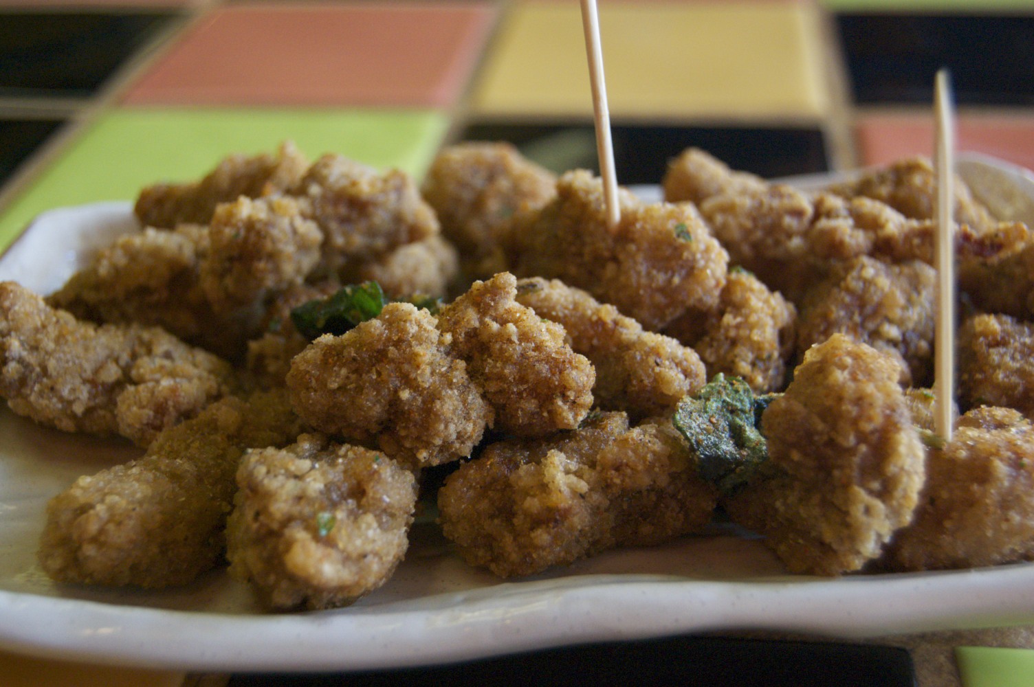 The appies came with little toothpicks so we can pick at them. The chicken were boneless bites coated in a savoury batter fried to perfection, they were really good! the sweet potato balls came pipping hot and they were chewy and well, sweet. Almost like a dessert.