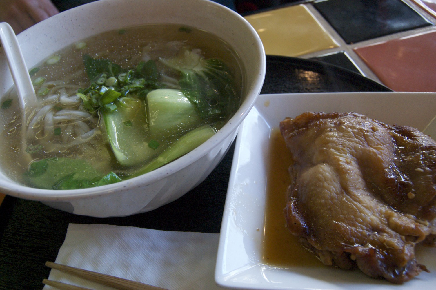 The chicken BBQ noodle soup was something else. For starters, the chicken came on the side, and it had a sweet, almost like a Teriyaki glace. It was moist and tasty enough, the noodle soup, even though it had bok choy and chives, it still had almost no flavour.