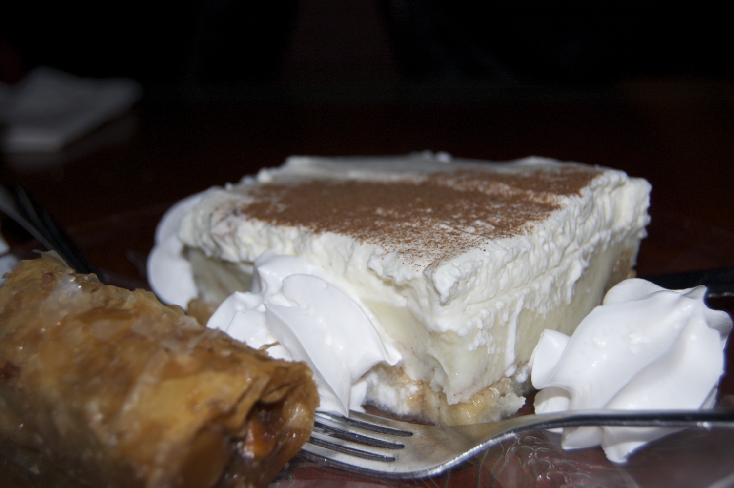 We were out of luck – they were out of their famous Tiramisu. Instead we ordered the Greek version of it called EckMec – instead of cheese, they use a creamy custard. It was fantastic! We also had a bit of Backlava, and it was nutty perfection.