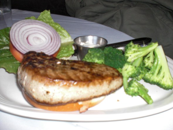 The Blue Point Oysters are to die for at $3.00 each and The Colossal Crabmeat Cocktail for $16.00 should not be missed. Someone at the table next to us ordered the Tempura Onion Rings for $6.50 and believe me that looked yummy! There is a sea and land menu at dinnertime that I’d like to go back and try. You can view their website at www.originalclambrothhouse.com. The Clam Broth House is Zagat Rated.