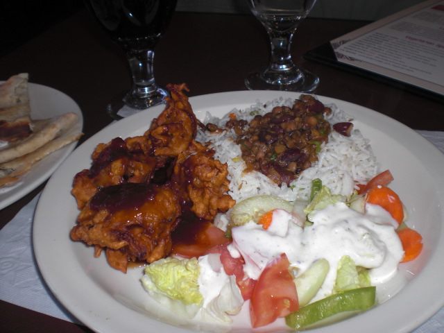 For our main course the buffet offered a “Vegetable Curry” filled with Brocolli, Cauliflower, Peas and Potatoes. Also featured was the “Chicken Tikka Masala” Boneless pieces of chicken simmered in a tomato sauce, “Chicken Tikka” Tender boneless pieces of chicken breast flavored with spices with raw onion & lemon, “Lamb Kadai” Lamb cooked with onions and bell peppers in a curry sauce and “Chana Palak” –Chickpeas cooked with spinach. Among other tasty dishes. We finished our lunch with the “Gulab Jamun” Golden brown fried dipped in sweet syrup for $4.00. These were fantastic almost with a syrup/rosewater flavor, with raisins and cashews, I highly recommend trying these
