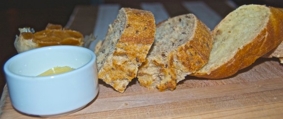 Cocktails are very affordable for downtown Vancouver here. I ordered a premium gin and tonic for $7. While I was enjoying my drink, I was offered some complimentary bread, all organic. The bread came with a half a clove of honey roasted garlic. I mixed mine with butter to make a garlic spread that was out of this world.