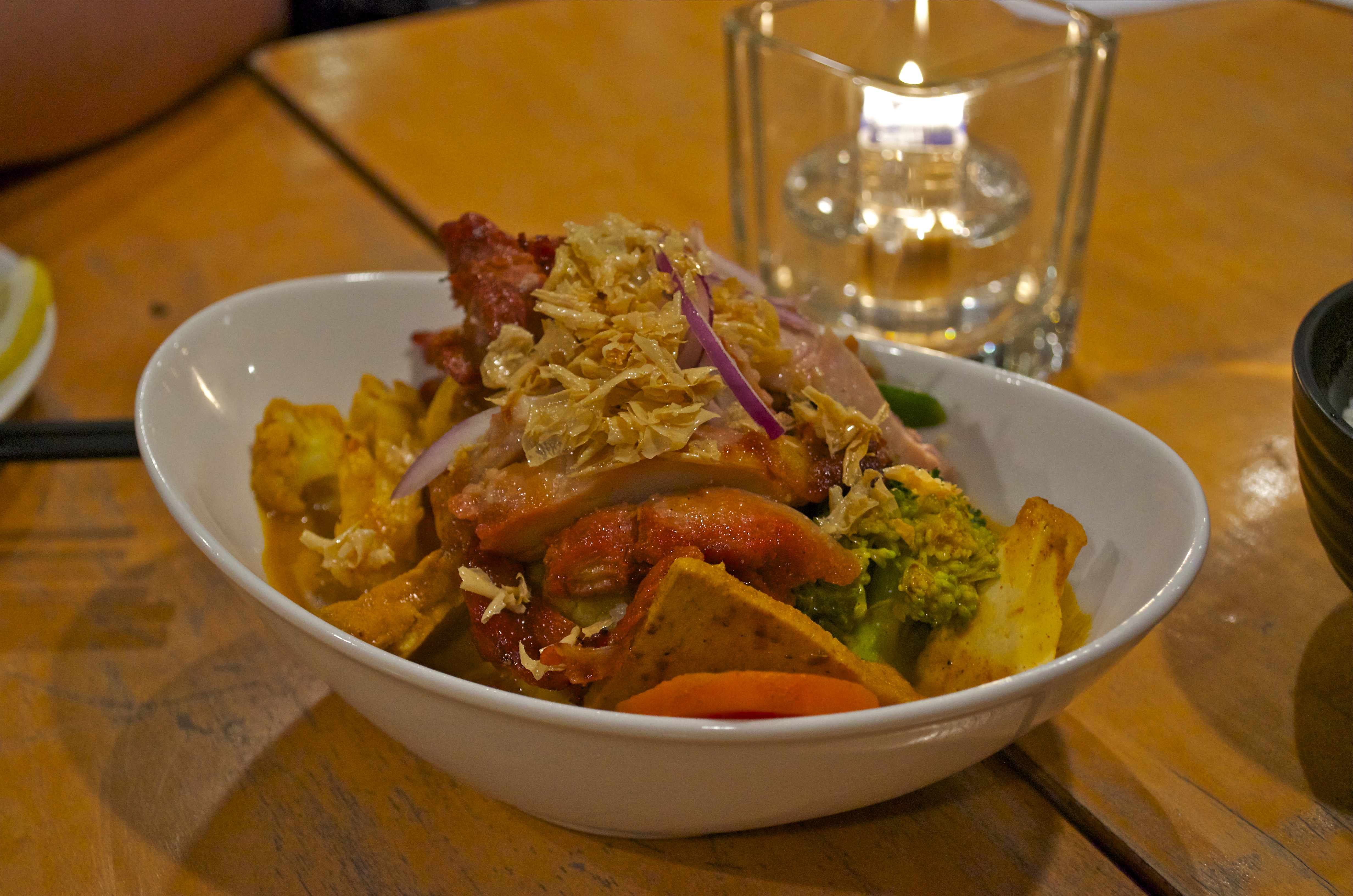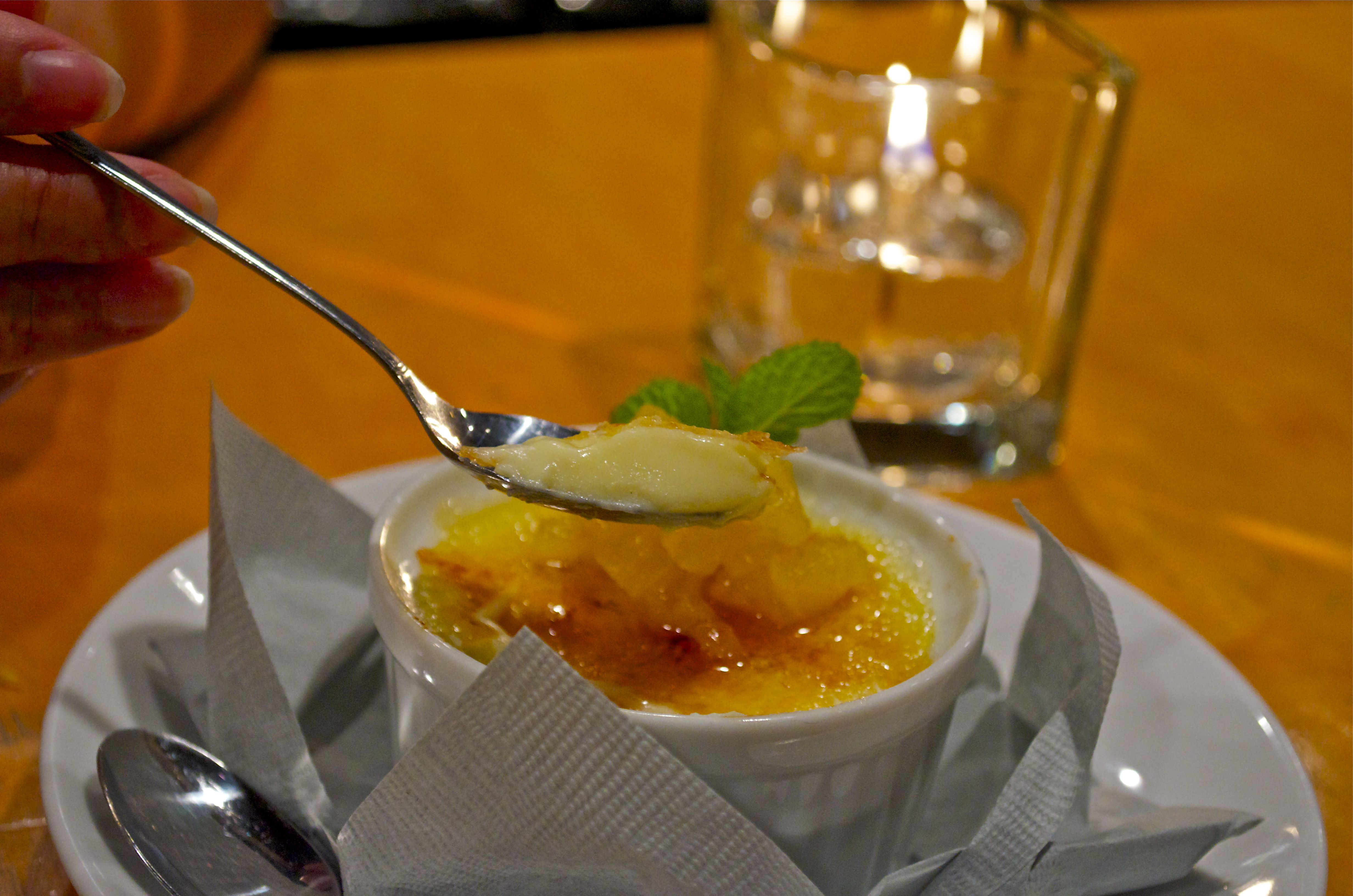 After our curry we had a lovely Lemongrass Ginger Creme Brulee that came with pineapple chutney. This is my only beef: If you’re gonna make such a fantastic dessert, and make two people share it, make sure that you make extra. I had to restrain myself from licking the bowl! It was great. The creme brulee had hints of coconut, which made it very unique. The sugar coating was also harder and thicker than usual creme brulee, but in this particular case, it complimented the dessert quite well, as the pineapple chutney on top had plenty of moisture that otherwise would’ve enter the inner layer of the dessert. A real winner in my books.
