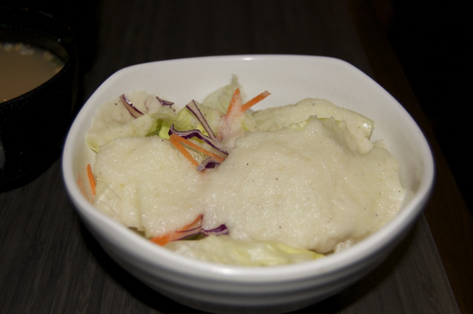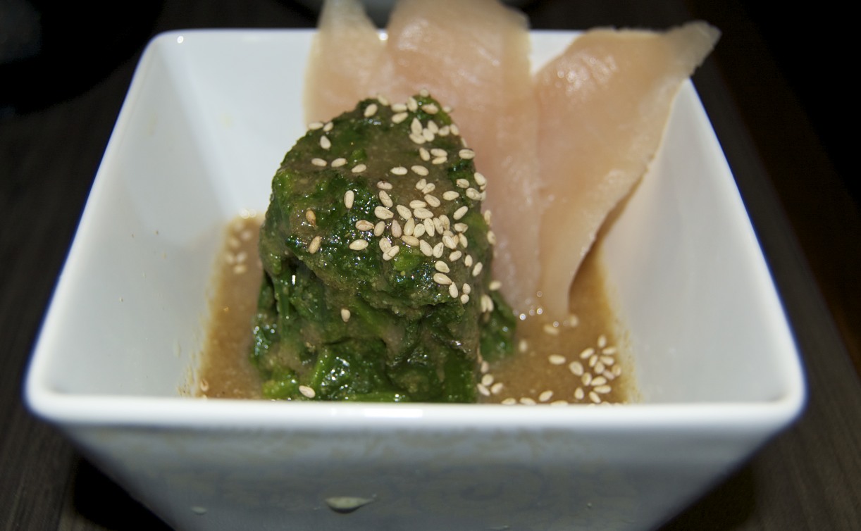 We came out to try their lunch combos: Good food, lots of variety and fresh rolls, the combos also come with miso soup and salad. We also ordered the Tuna Gomae ($5.40) as a an appetizer. It had spinach on a sesame peanut sauce and tuna sashimi. Very fresh and very good. The sauce was a tad grainy, which puzzled me, as I’m used to gomae sauce to be very smooth. Still, it was very tasty.