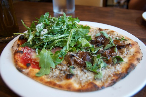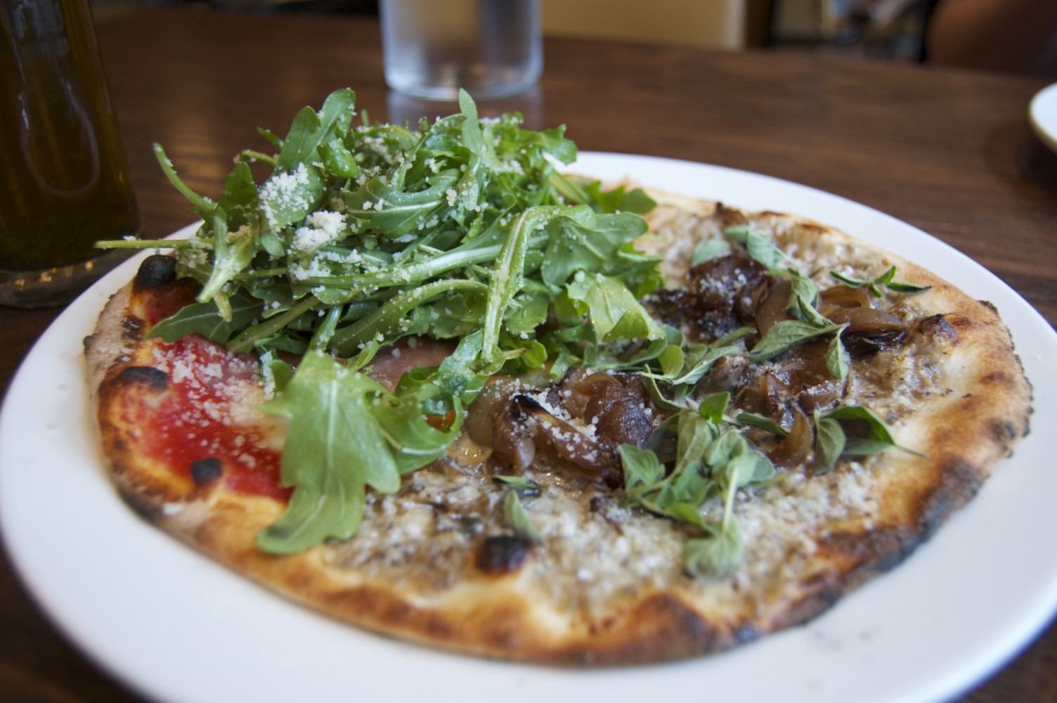 Moving on, we have the Brick Oven Baked Pizza. The crust is homemade. (Again with the wonderful details). The pizza was half prosciutto (fior di latte, prosciutto, fresh arugula, grana padano and evoo) and half funghi (mushroom cream, balsamic onions, crimini, portabella and oyster mushrooms, topped with fresh oregano, grana padano and evoo). The pizza was only 8 inches, but it was filling, and I love having the variety of the meat and vegetarian sides! Now Sean says that the reason why the prosciutto pizza is covered with arugula is to cut some of the richness of the meat, but I just don’t get it. It’s like having a salad on top of my pizza.