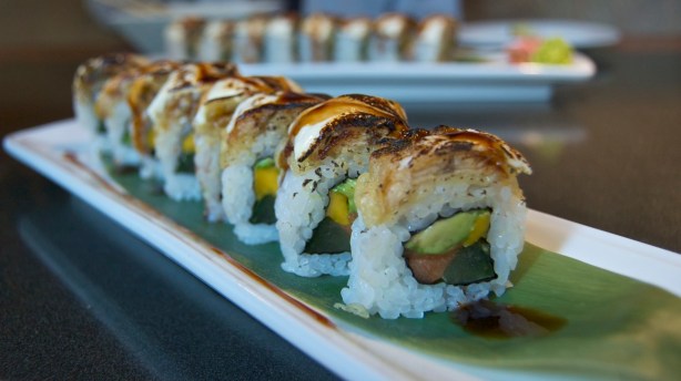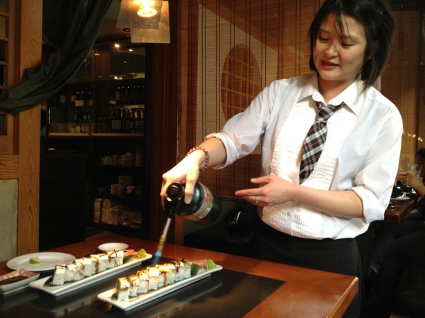 Moving on, we have the Oda Roll. Named after Japan’s top figure skater Nobunary Oda, this is not a roll, this is an experience!. The flavours are bold, and unique. Filled with mango, avocado, cucumber and salmon and topped with fresh water eel wrapped in tempura and cream cheese. The dish is then finished right at your table with a server searing it with a blowtorch. Pretty cool.