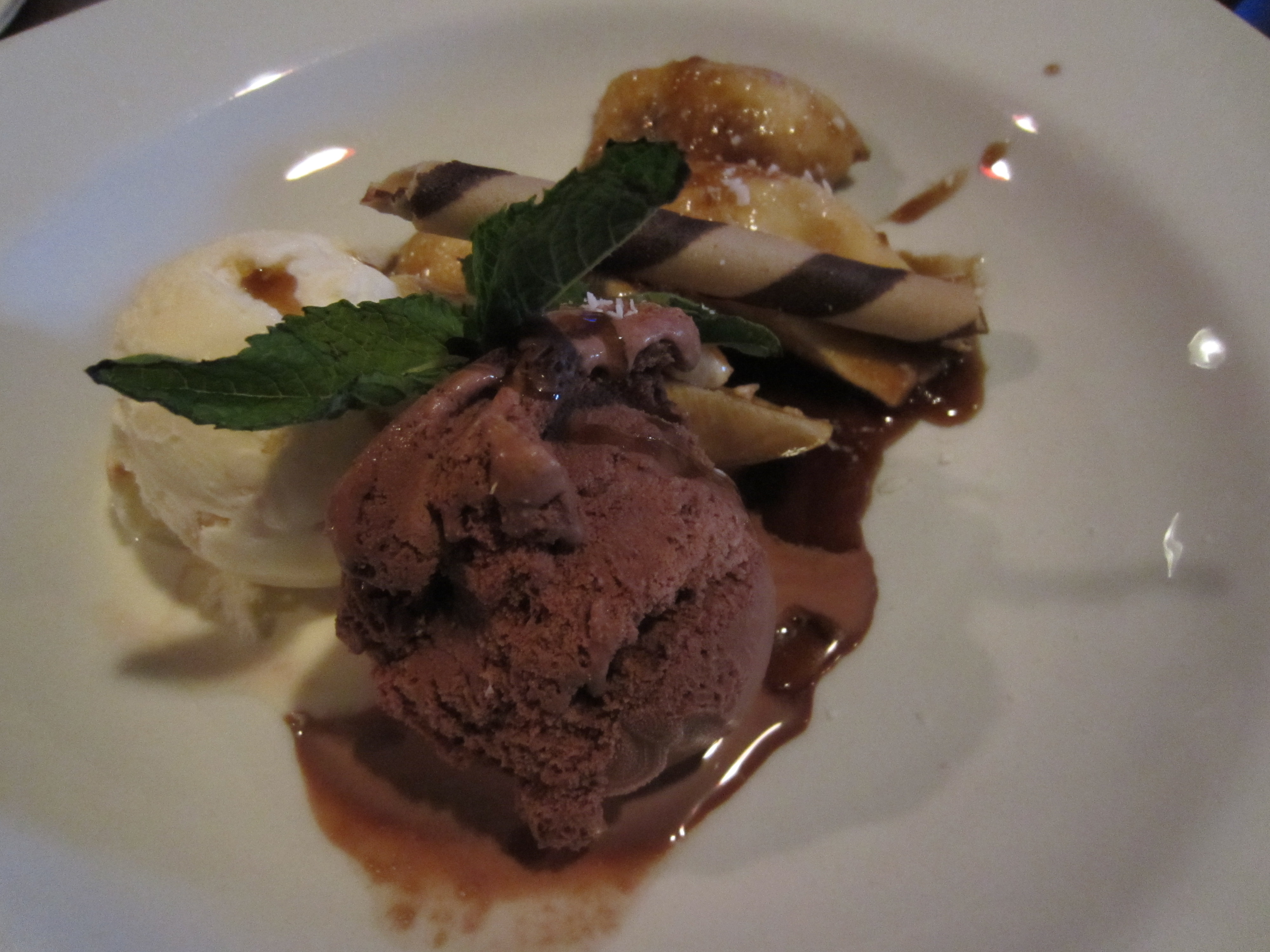 As for the food and drinks, my bf and I, along with some of his friends who joined us, ordered mostly dessert and drinks. The highlight dessert of the evening was Cottage Bistro’s signature dish – Malibu-nana. This dish consisted of pan-fried bananas cooked in a brown sugar and coconut rum sauce, accompanied by two scoops of vanilla and chocolate ice cream. This dish was sinfully delicious – the ice cream complimenting the sweet banana and brown sugar/coconut rum sauce. I found it just a tad too sweet if you ate it without the ice cream. I also didn’t really taste the coconut rum part.