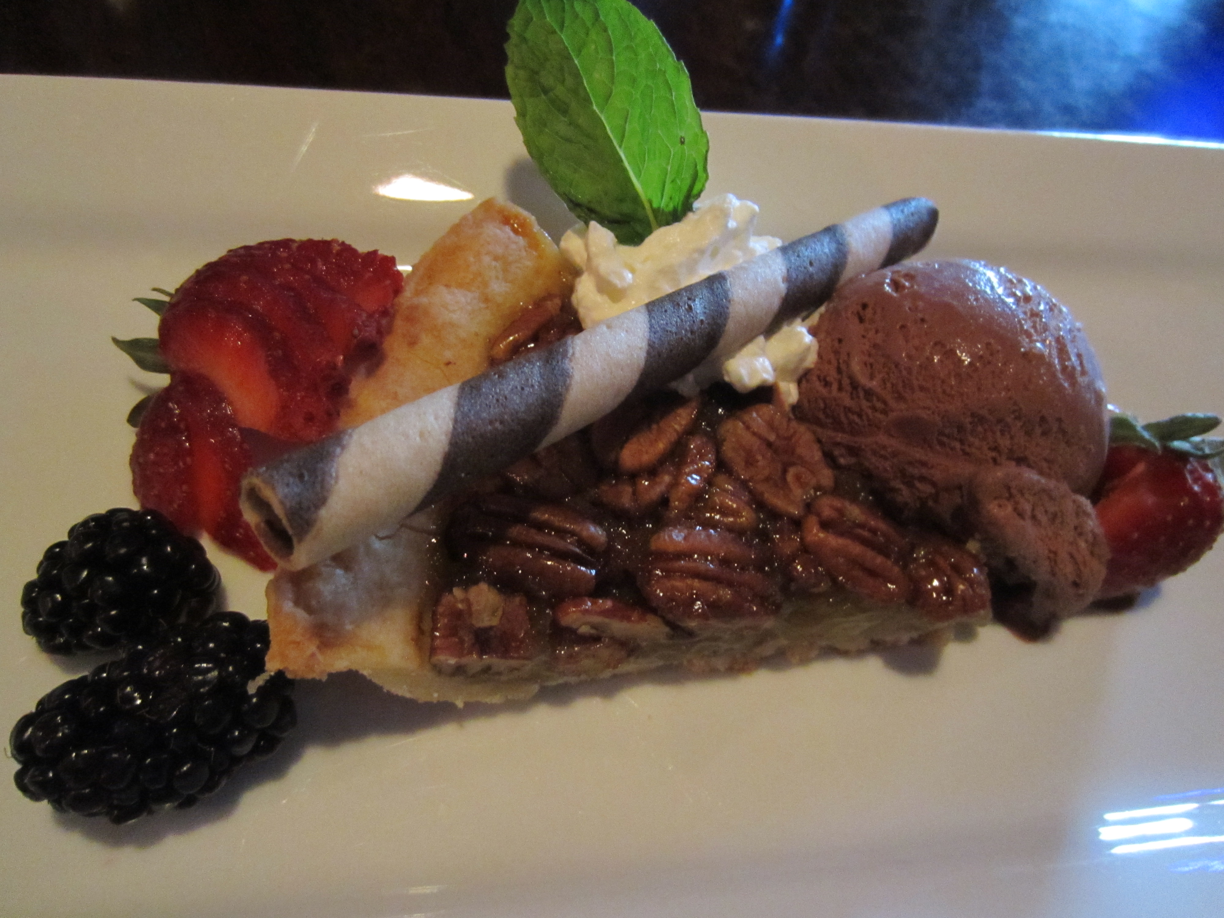 My bf ordered the Pecan Pie with Ice Cream, which came with whip cream and a scoop of chocolate ice cream. It was suppose to come with an espresso drizzle on the pie, however we did not taste the espresso on it. The strawberry and blackberries to garnish the pie was the perfect touch to the dessert. Would have loved to try their Chocolate Mud-Pie, however they were out of it that evening that we went.