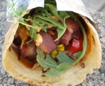 This bad boy is called the Southern Piggy ($9) – it comes with grilled peppers, corn, chipolte mayo, greens, a bourbon BBQ sauce that was out of this world, and of course, lots of double smoked bacon. Lots of it. This sandwich is not for the faint of heart. This is a MAN’s sandwich, and I had a bit of trouble finishing it, it was that big. A very good value for my hard earned bucks. Great job on the peppers, and that sauce, oh man, that sauce was good.