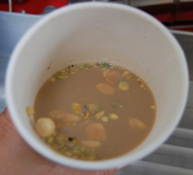 But He doesn’t want to rest on his own laurels. He wants you to come out and experience the food yourself. The menus are inspired by Mr. Vij’s trips to India, but the daily operations of the truck are in the capable hands of chef Chris Carter and his staff. The menus will differ from the restaurants, each place offering you a different experience. The menu items range from $10 to $15. For my experience, I tried the Lucknow Lamb Kebabs ($9) and a cup of the Kashmiri Chai with Pistachio slivers ($3.50). The tea was amazing. So fragrant and sweet. The pistachio adds a lovely nutty flavour to the mix.