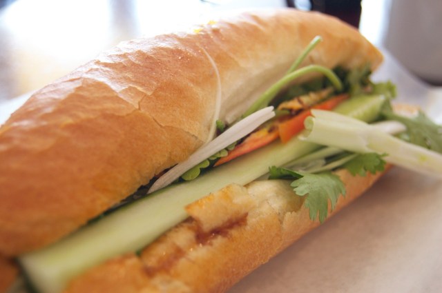 I ordered the Ga Noung Sa for $3.95. My baguette sandwich had lots of toppings: carrots, cilantro, scallions and BBQ chicken. I knew that the sandwich had hot peppers, but hey, I’m Latina, I can take a little heat. I was really loving it, until I got halfway thru it, and I bit into the hottest peppers I ever had!! My mouth was on fire. I could understand if the peppers were spread evenly on the sandwich, but they were all right in the middle. It was brutal.