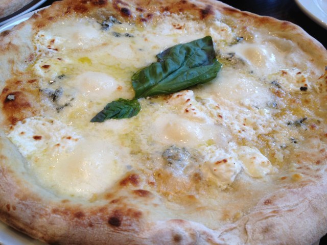 For my meal, I ordered the Quattro Formaggi. This pizza is usually $16.25, but it’s on special on Mondays for $13. It has