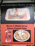 Next at the same venue was a Bacon & Maple Syrup Delux Funnel Cake. It was like a light and fluffy waffle, with a bit of whipped cream, and some bacon pieces sprinkled on top. Also very yummy and extra bad for me since I had cut pork out of my diet long ago!