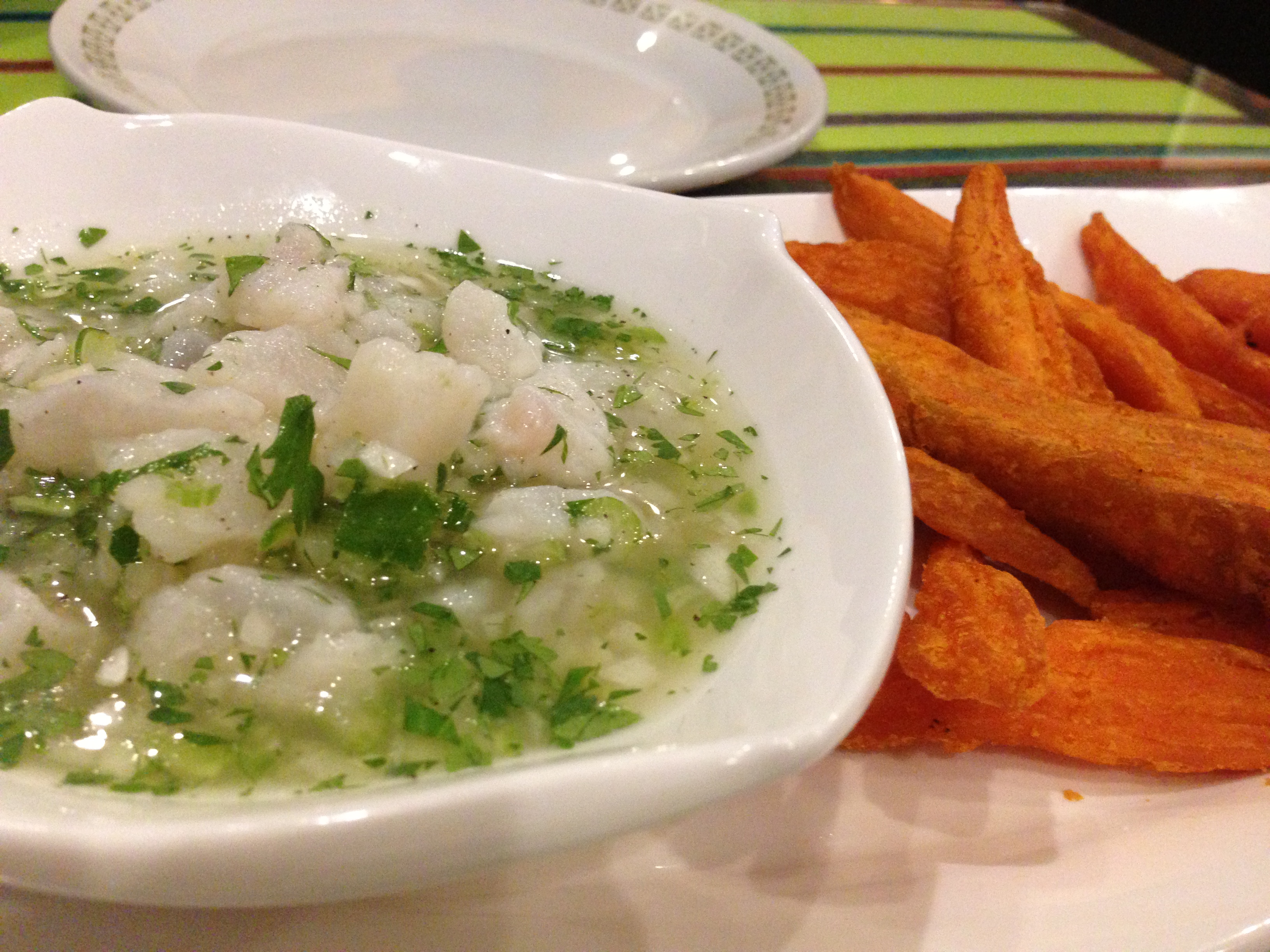 If you decide to pay them a visit, order the Ceviche – white fish medley with lemon juice and spices. It’s so good! It’s also served with a good portion of yam fries, so it’s like two appetizers in one.