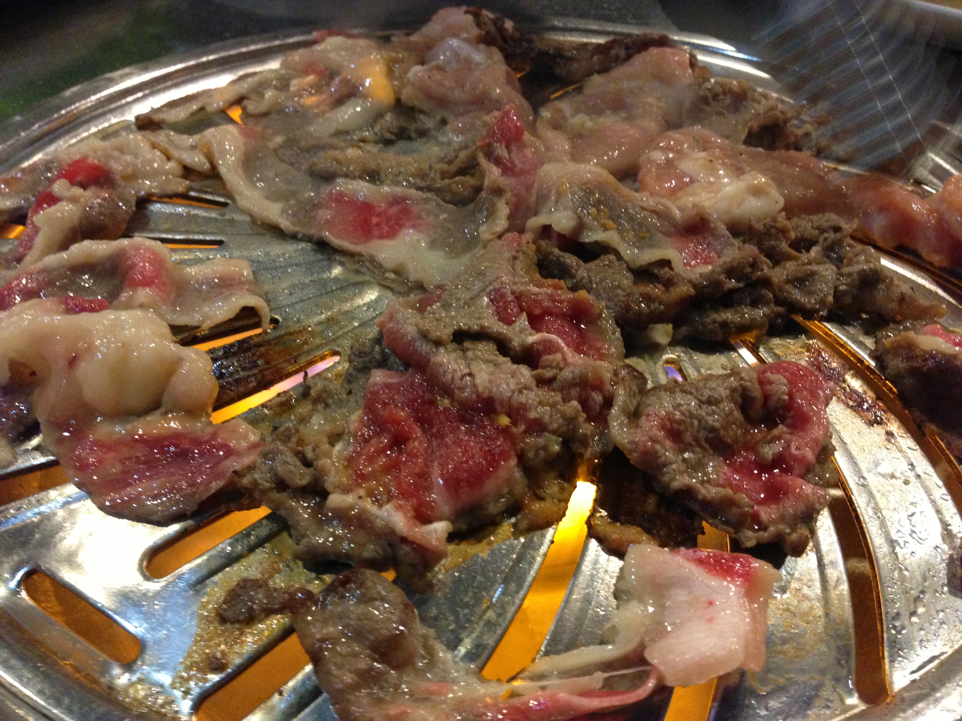 We were seated at a booth with a large BBQ element in the middle. We opted for the all you can eat option ($25), which comes with a variety of meats, vegetables and appetizers.