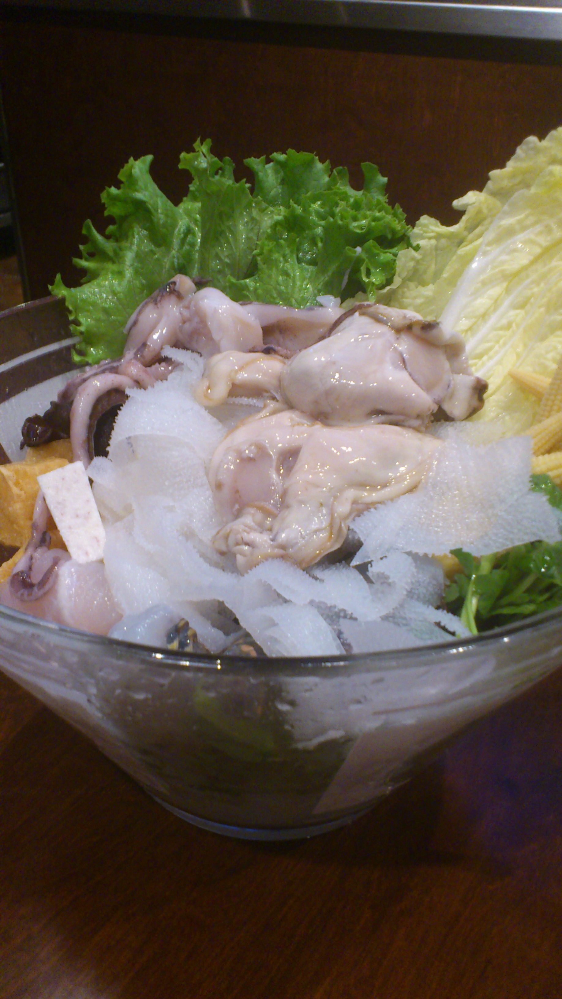 My cousin told me Toyotomi offered a $14.99 regular Japanese hot pot, or a $20.99 deluxe Japanese hot pot + sashimi. It was decided unanimously between the 4 of us that the $20.99 menu was the better deal. It included a larger selection of hot pot items such as snowy fatty beef slices (probably one of the best types of hot pot beef slices offered at the restaurant), oysters, tiger prawns, pork neck (super tender pieces of pork, thinly sliced), and unlimited salmon, tuni, ika, tai, saba, spicy salmon and spicy tuna sashimi. Yes, that’s right, unlimited! My sister’s favorite was the tai sashimi (unlimited!), whereas mine was the very limited baby tako (baby octopus marinated in soy sauce and sesame oil, limited to 1 piece per person).