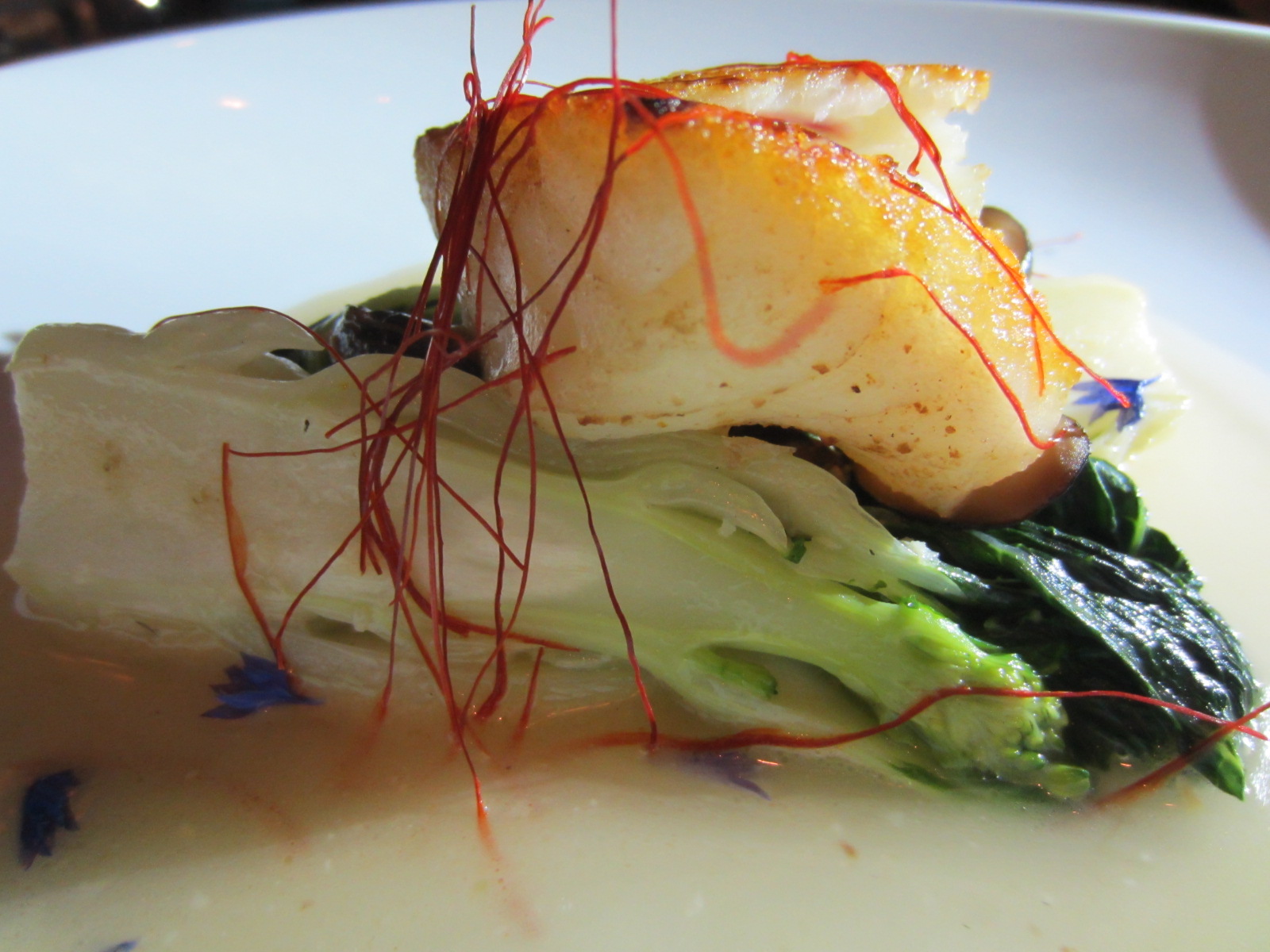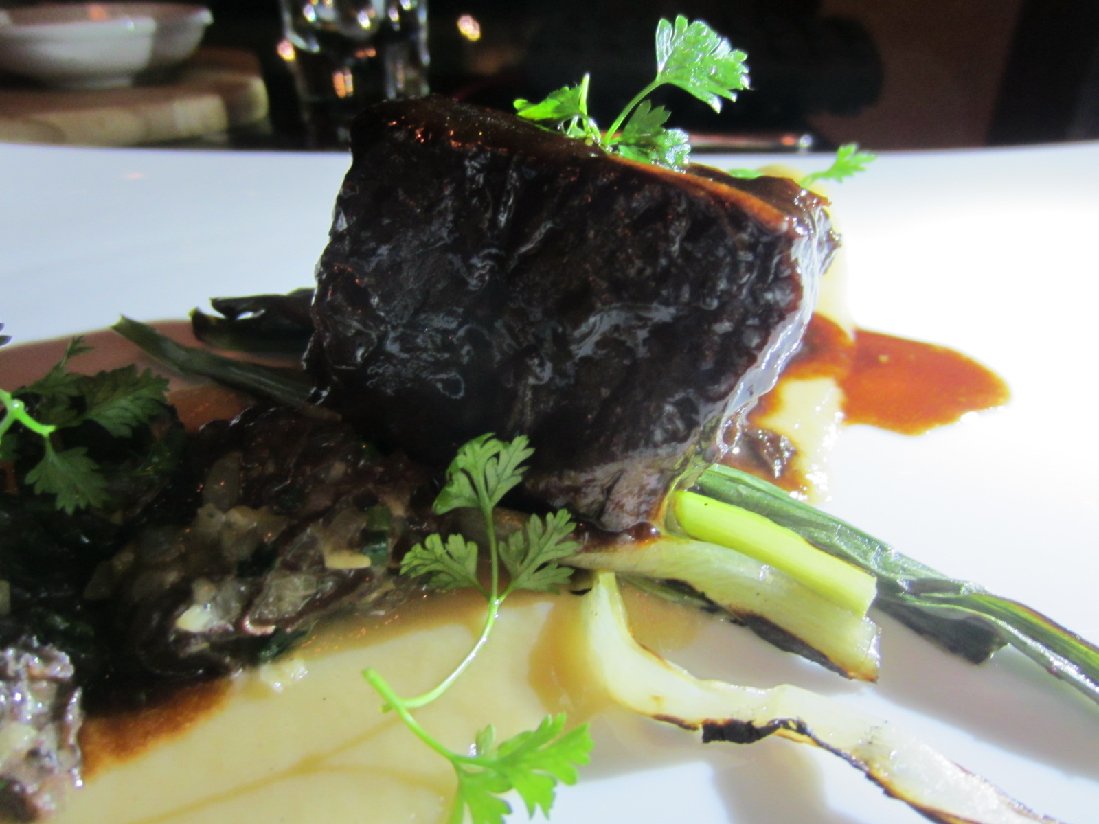 The fish is ocean wise certified and flaky and moist. This dish is served with a dashi broth that is poured on top of the dish right at the table, strands of red chilli give the fish just a hit of spice. The flavours on this dish are sublime! Complimented with baby bok choy and shiitake mushrooms, this dish was simply amazing.
