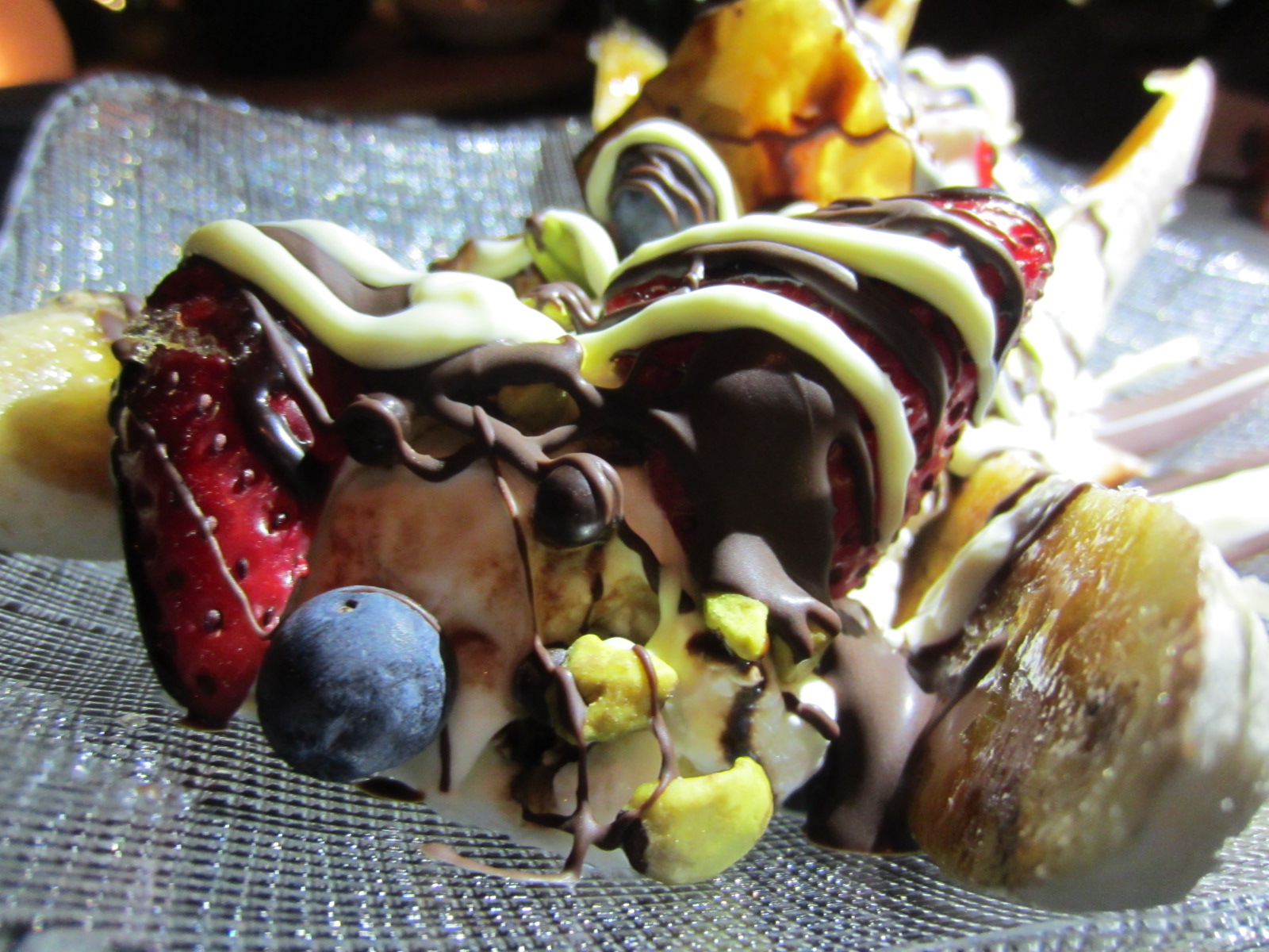 This isn’t your kid’s banana split. This is the grown up version! caramelized bananas together with vanilla ice cream, almond brittle, fresh berries pistachios in a chocolate sauce. Oh wow. Just wow. The portion is also quite generous!
