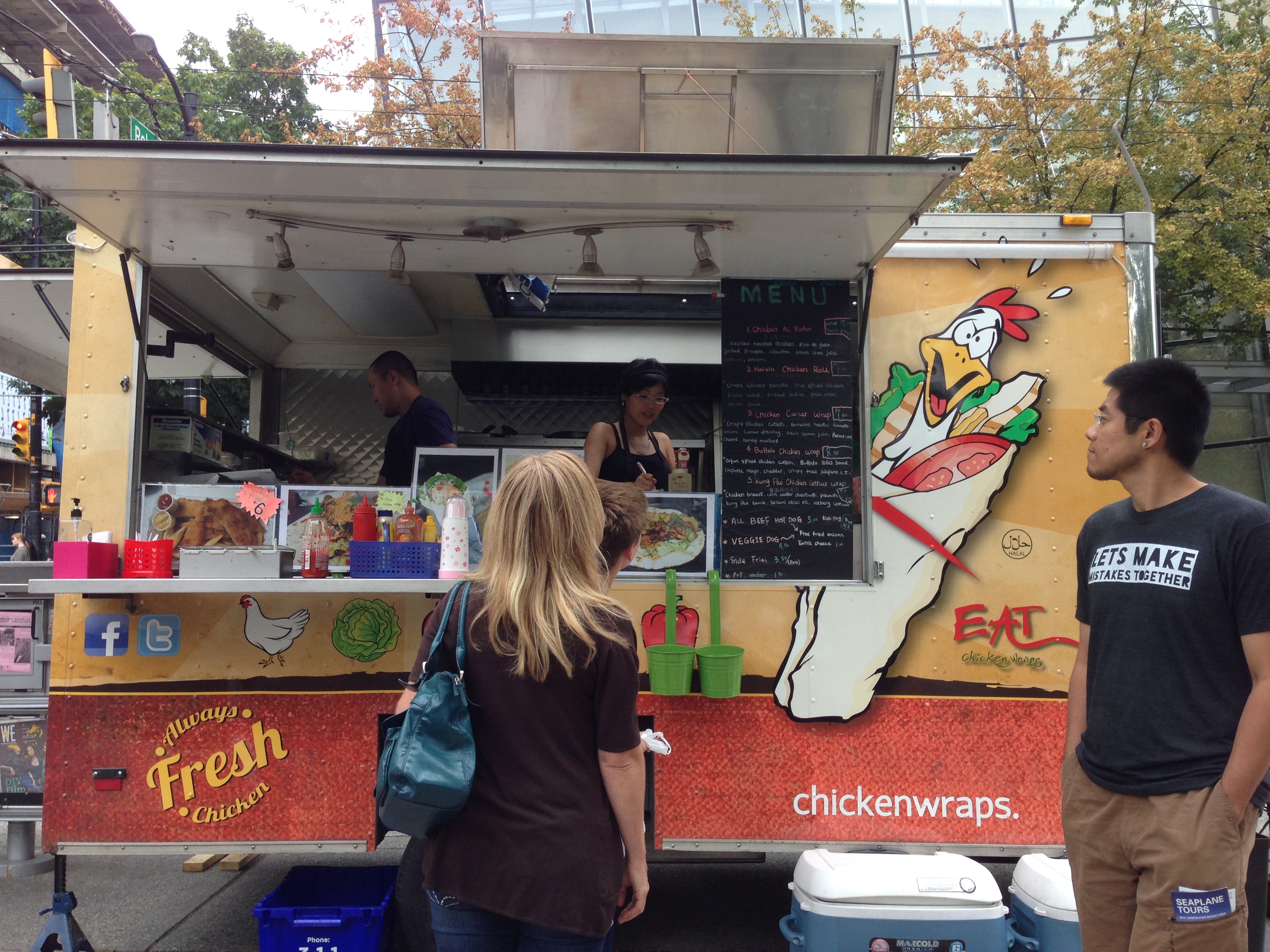Follow them on Twitter: @EATChickenWraps. For operation hours for this food truck and others in the Vancouver area, check out the free Street Food app, available for download on iTunes.