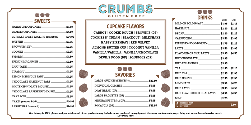 Check out their new tasty menu and follow them on Twitter @CrumbsBakeShop
