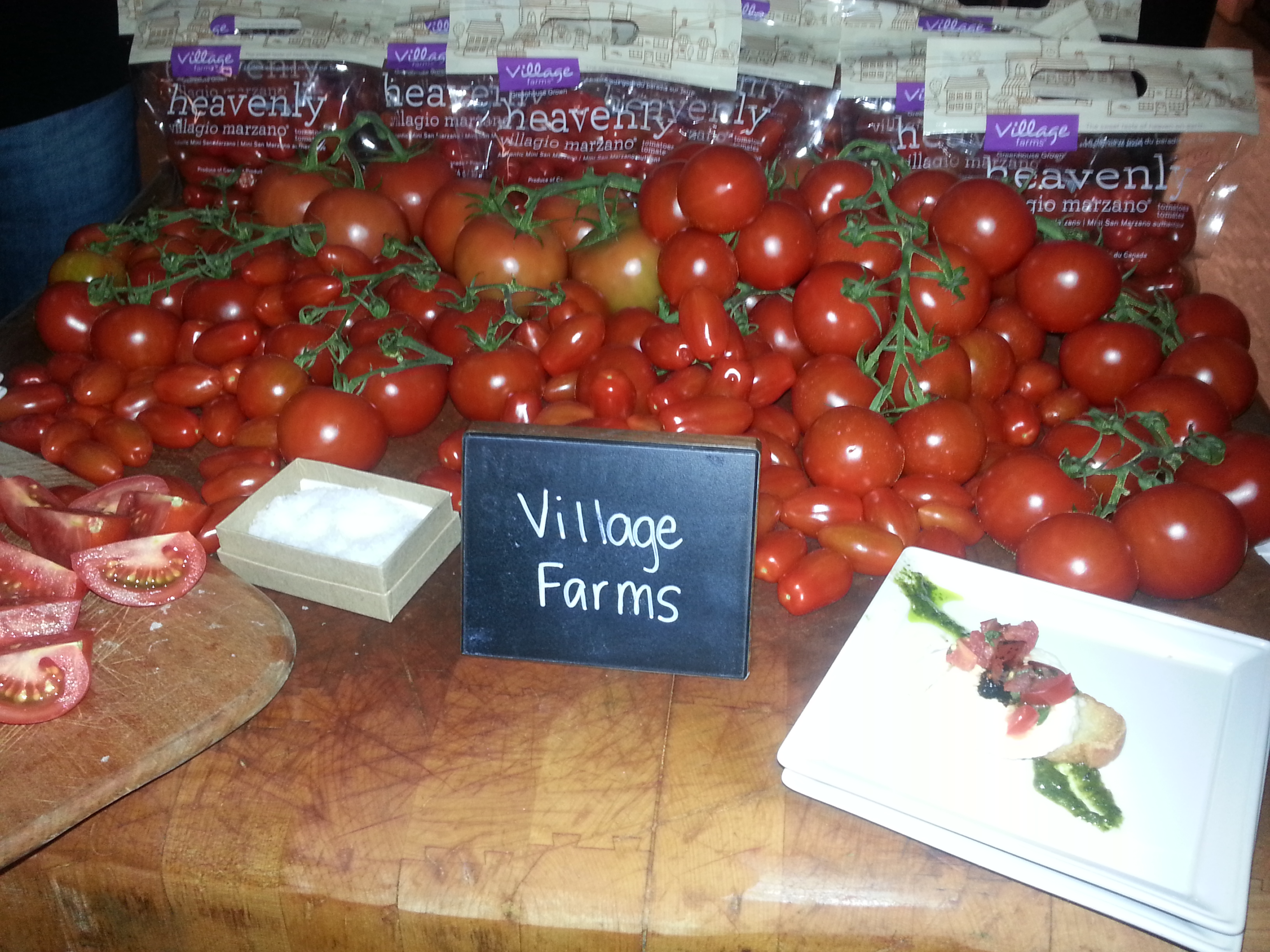 Village Farms had cut up some of their delicious campari tomatoes and marzano tomatoes. Both were naturally sweet and enjoyable as is – however they were also incorporated with Nature Pastures’ Vancouver Island produced buffalo mozzerella cheese on a crustini and glazed with Domenica Fiore’s Olio Reserva olive oil. This appetizer was delicious!