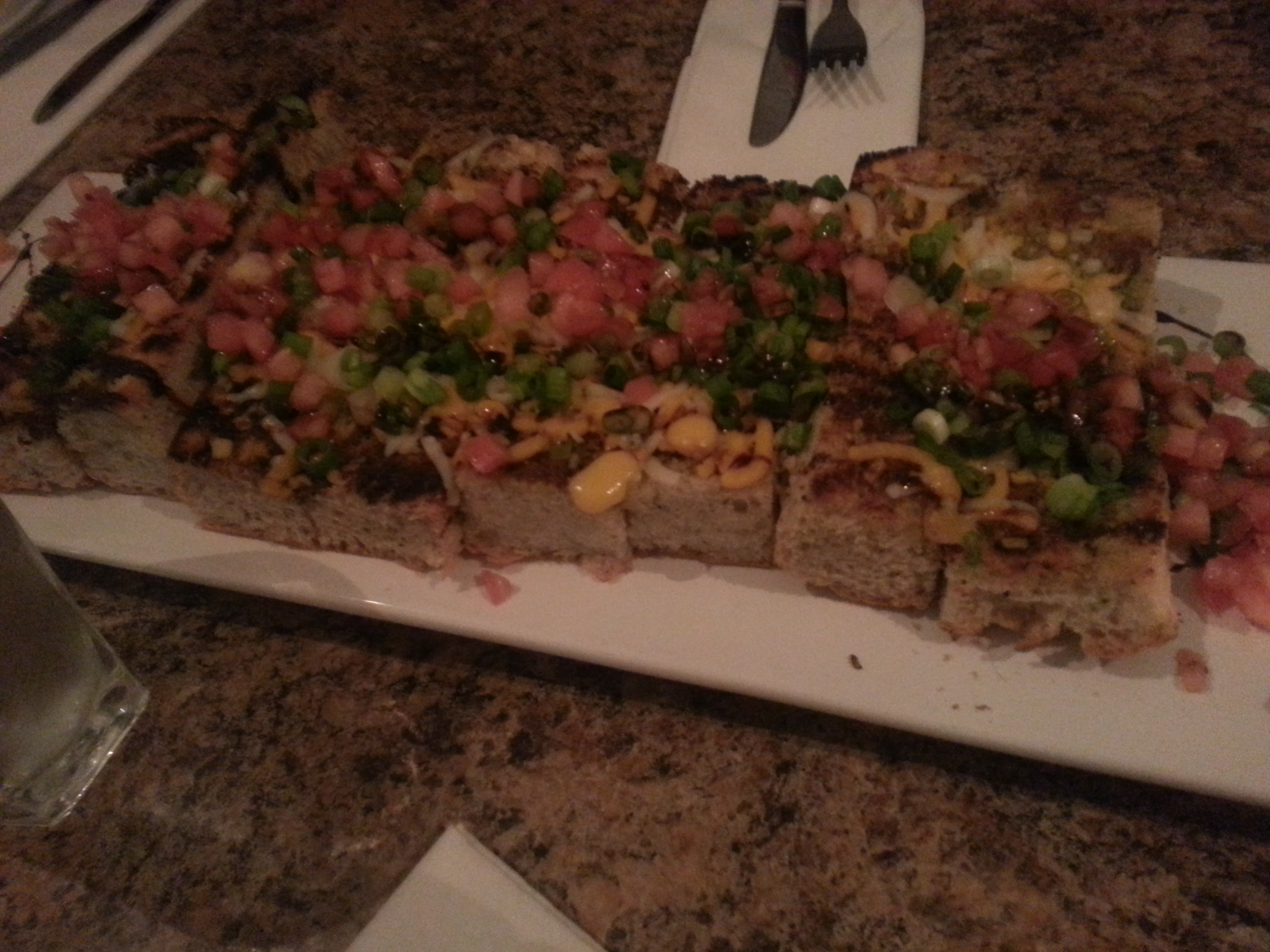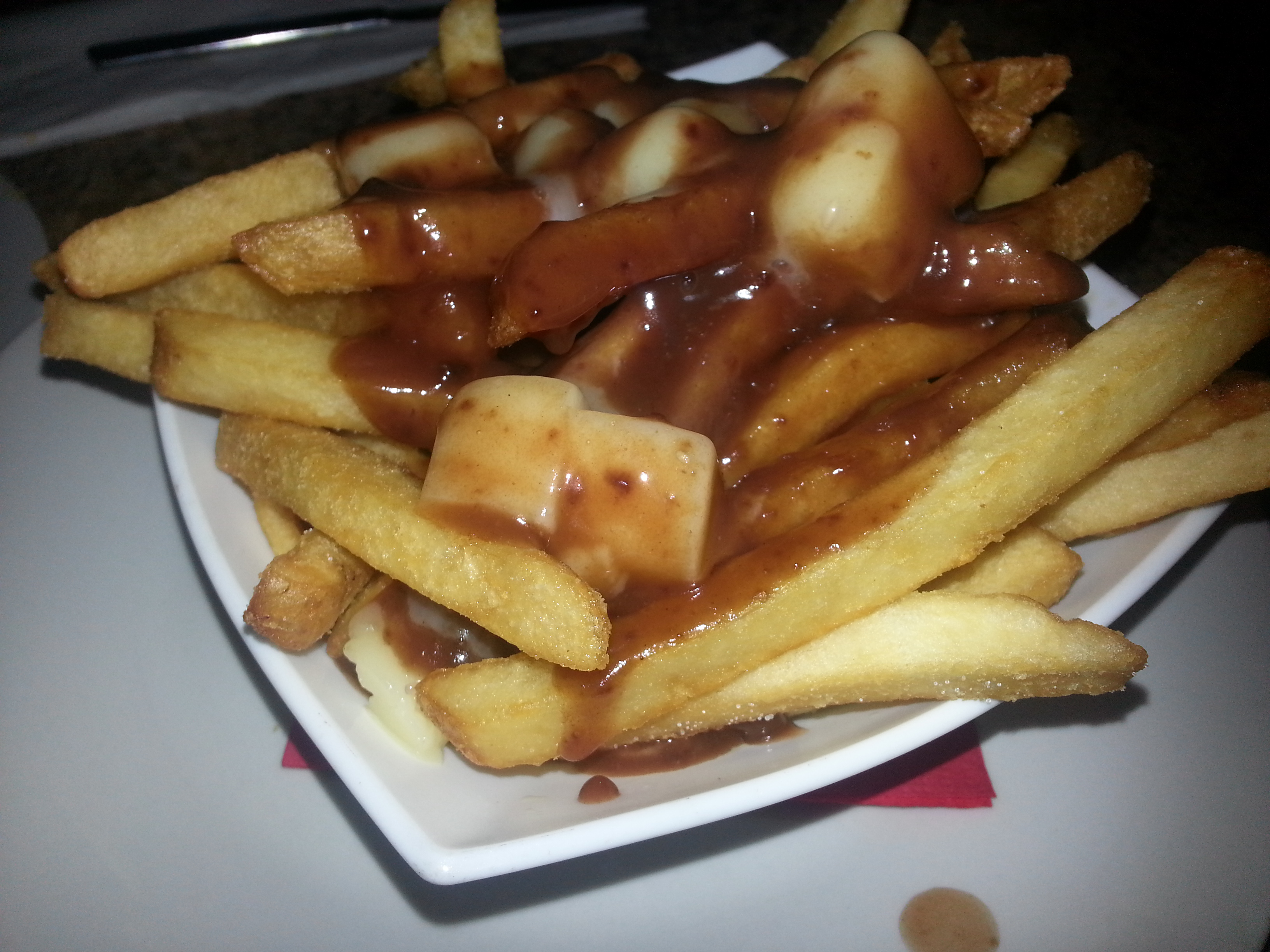 We started by ordering a toasted focaccia and a poutine to share amongst 6 adults. The toasted focaccia was topped with melted cheese, tomato, green onions, and a balsamic reduction. It was large enough that some people even had 2nds, although I preferred something with less green onions. The Poutine was delicious – curds being just the right amounts of softness but not completely melted. However, there was a tad too much gravy towards the end. I suppose we should have mixed it up before digging in.