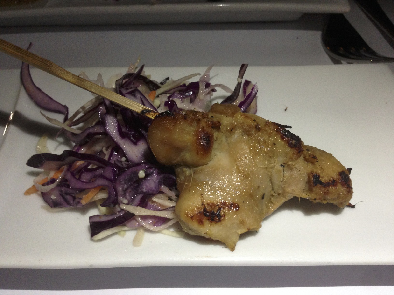 Scallop bacon wrapped satay ($2.95) – Billy ordered this one. All satays come with their homemade mustard and peanut sauces on a bed of purple cabbage slaw.