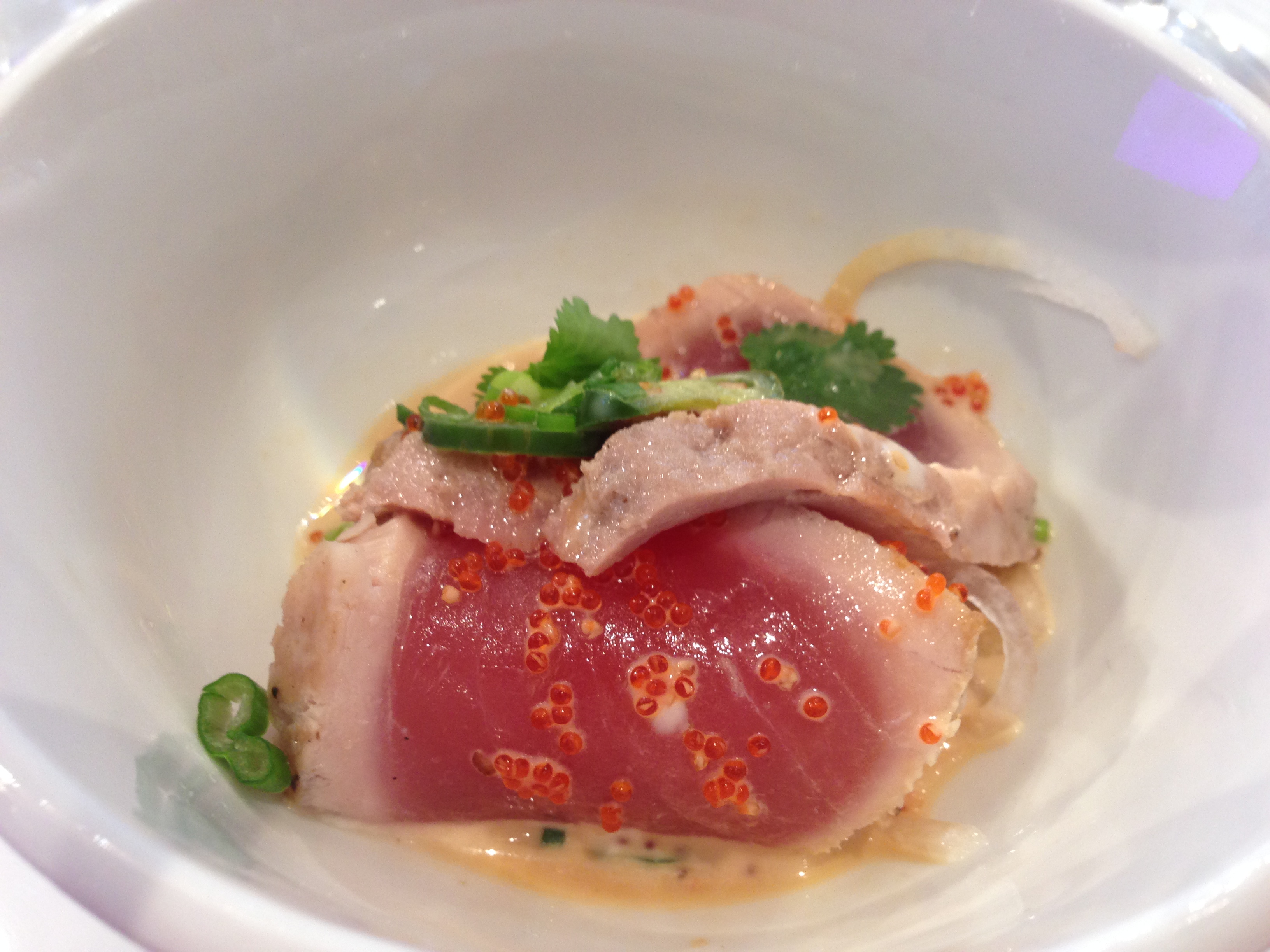 With intense aromas of orange rind, apricot, ginger, honey and fresh-cut flowers, this was a perfect pairing for this next dish – The tuna screamer