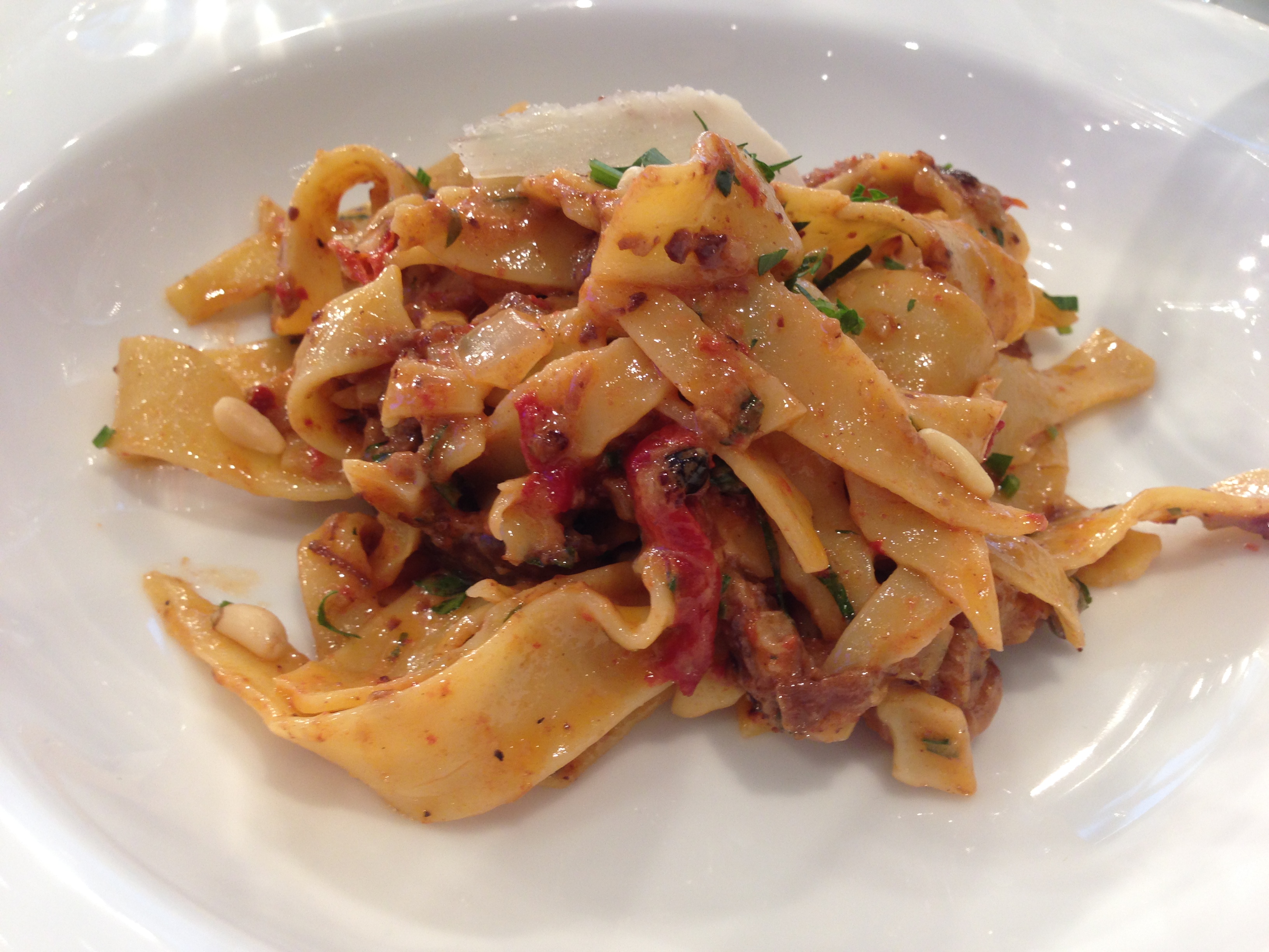 Our main course was the Hunters Pasta with lamb instead of short rib. Fettucine noodles, pine nuts, wild mushrooms, tomatoes, and garlic.
