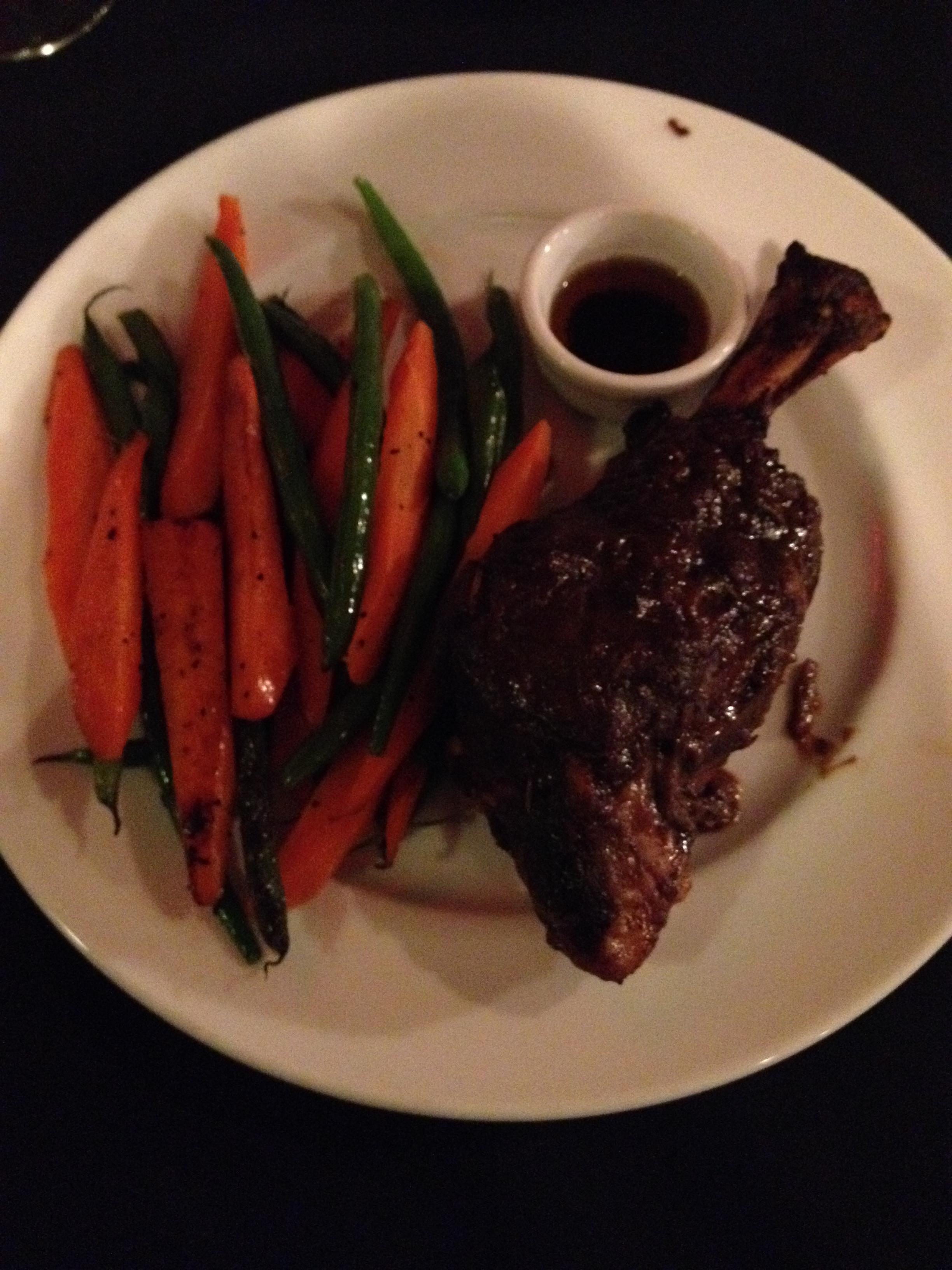 My husband decided to order the bisque and I ordered the mushroom caps with cream cheese and smoked salmon as appies. For mains, my husband ordered the ribs (which had an apple glaze that night) and I ordered the lamb shank. The food came out super fast and the portions were quite large. So large, we didn’t have room for desert, though their selection of dessert was mouth watering.