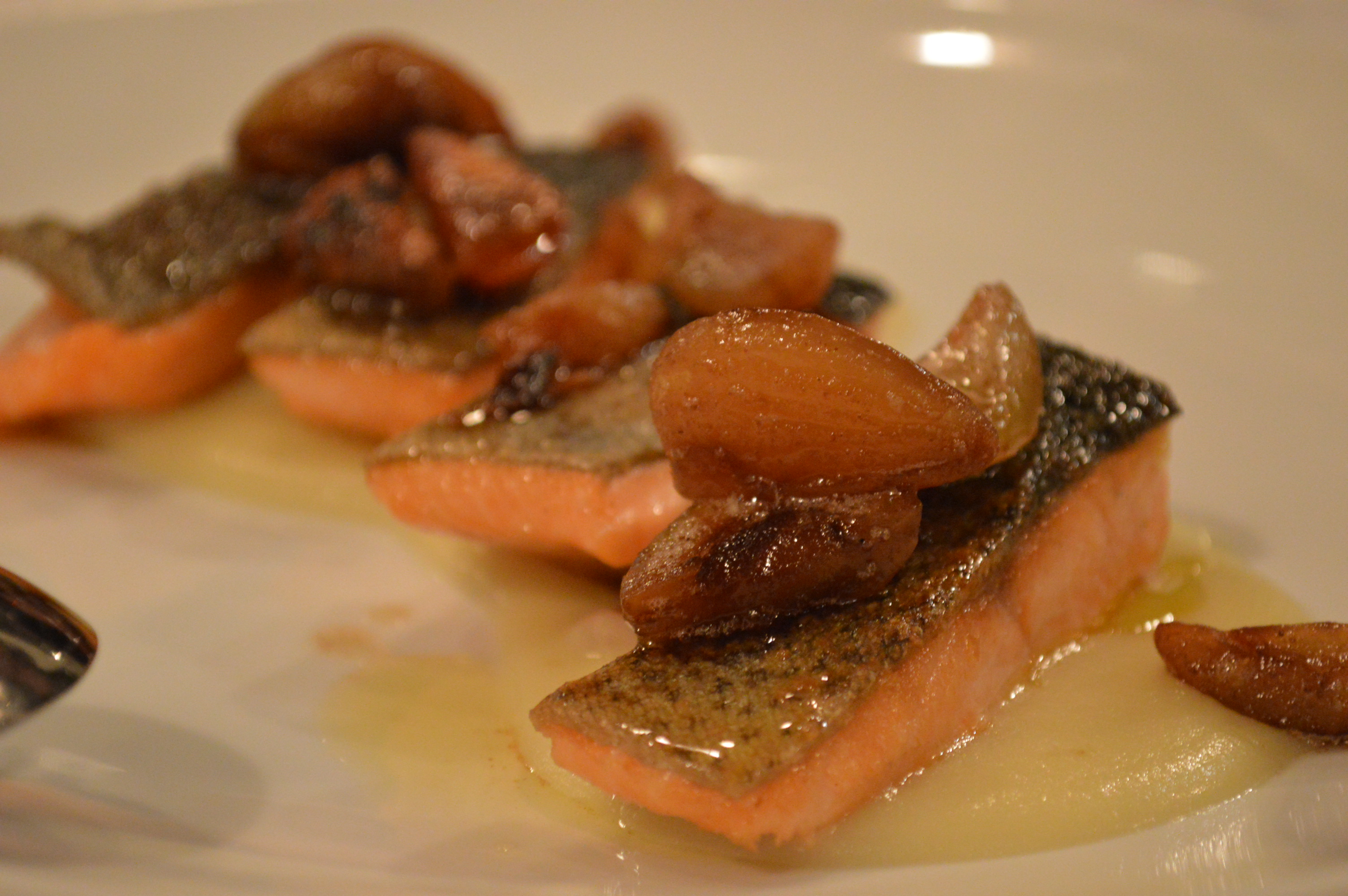 Trout, apple puree, roasted chestnuts