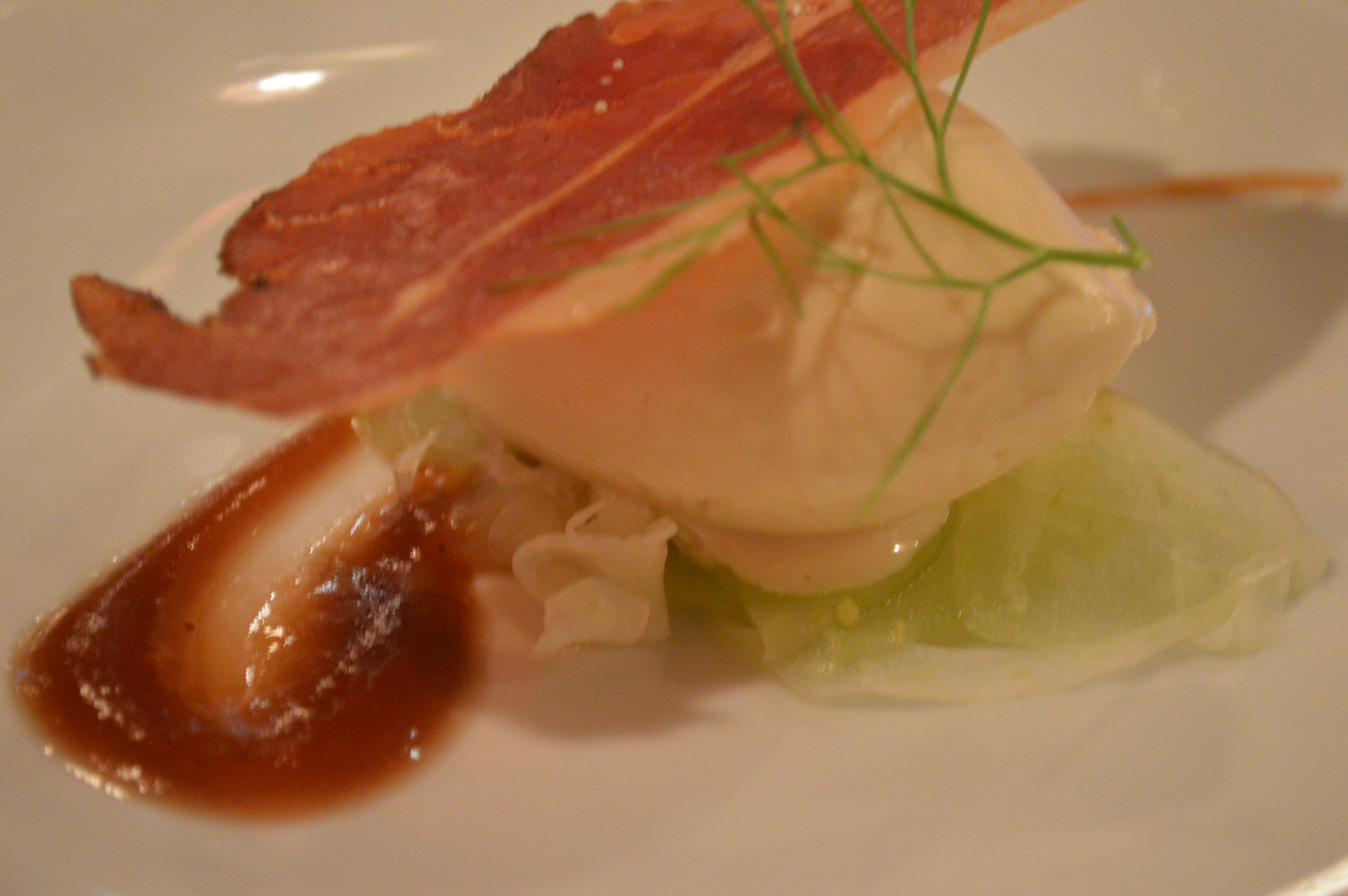 Tamarind ice cream, fennel and apple, caramel, speck