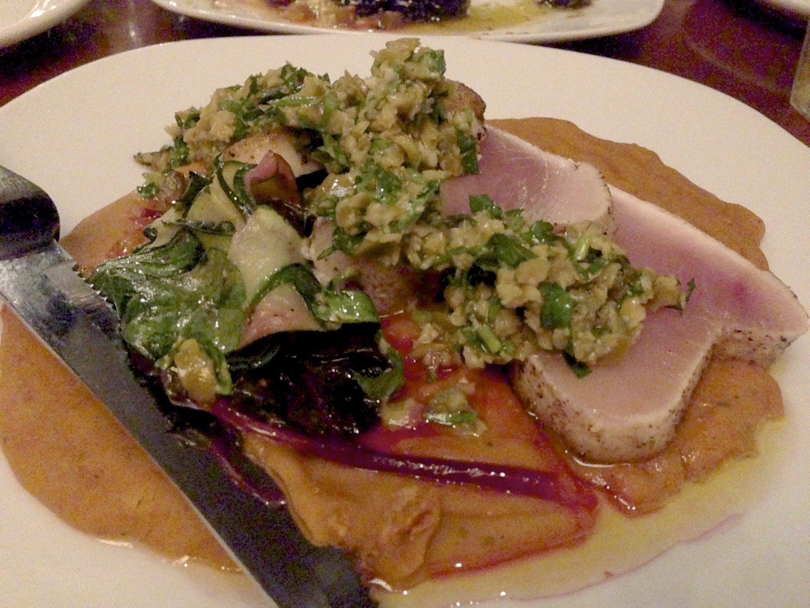 We wanted to order one item from each category on the menu. Moving onto the entrees, I settled for the Seared Albacore Tuna ($18) – Green Olive Tapenade, Red Lentil Puree and greens. It was an odd pairing, but it turned out all right. The tuna was delicious. I love it when it’s perfectly seared in all its juicy glory. I found the lentils a bit grainy – I wasn’t a fan.