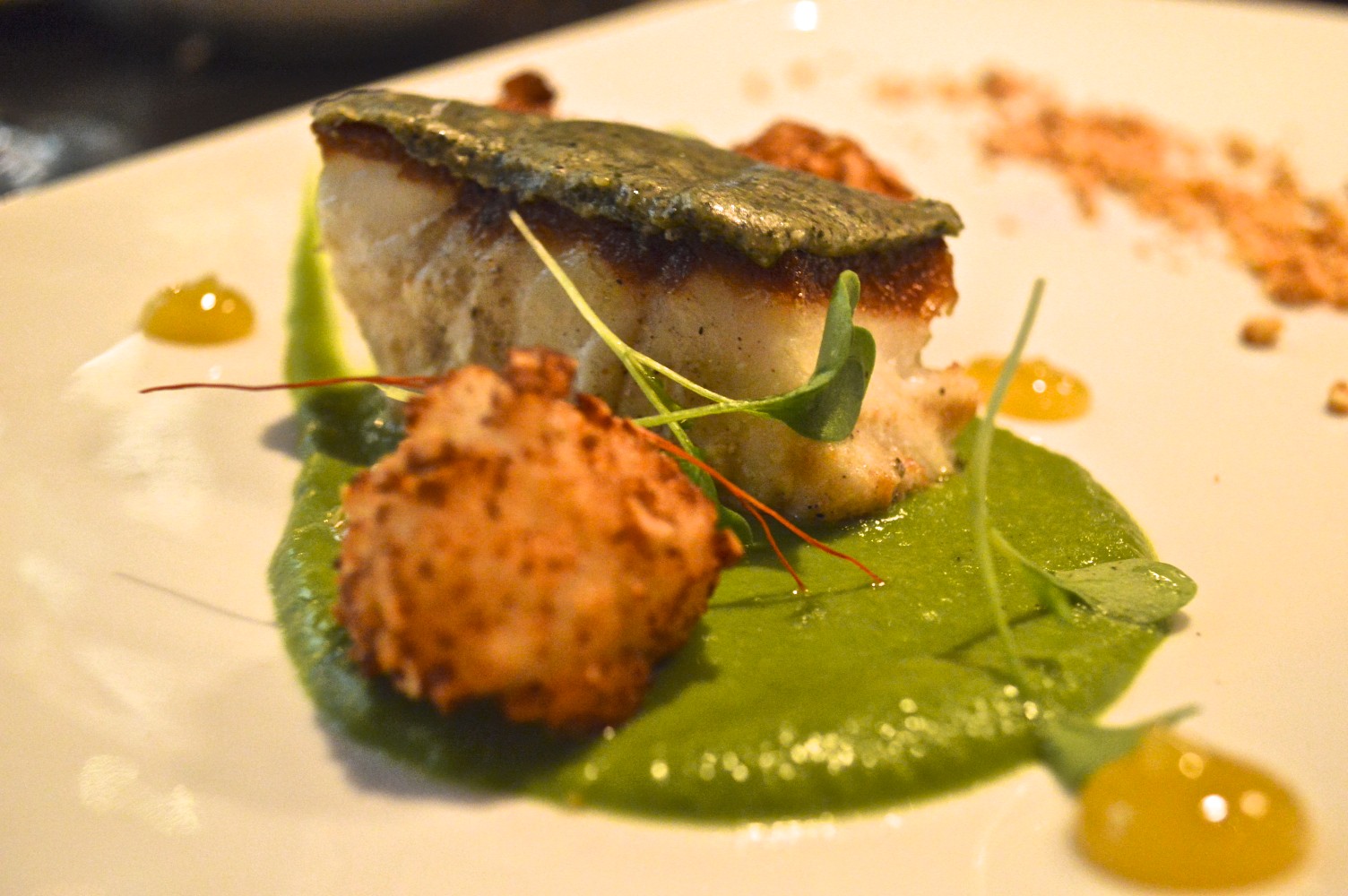 The fish came accompanied with a light tasting peanut mochi and a tangy lemon vinegar fluid gel. The top of the fish was perfectly crispy and gave the fish a very satisfying crunch. The green onion puree helped blend all the flavours together. This was my favourite dish of the night, and it definitely had a “wow” factor.