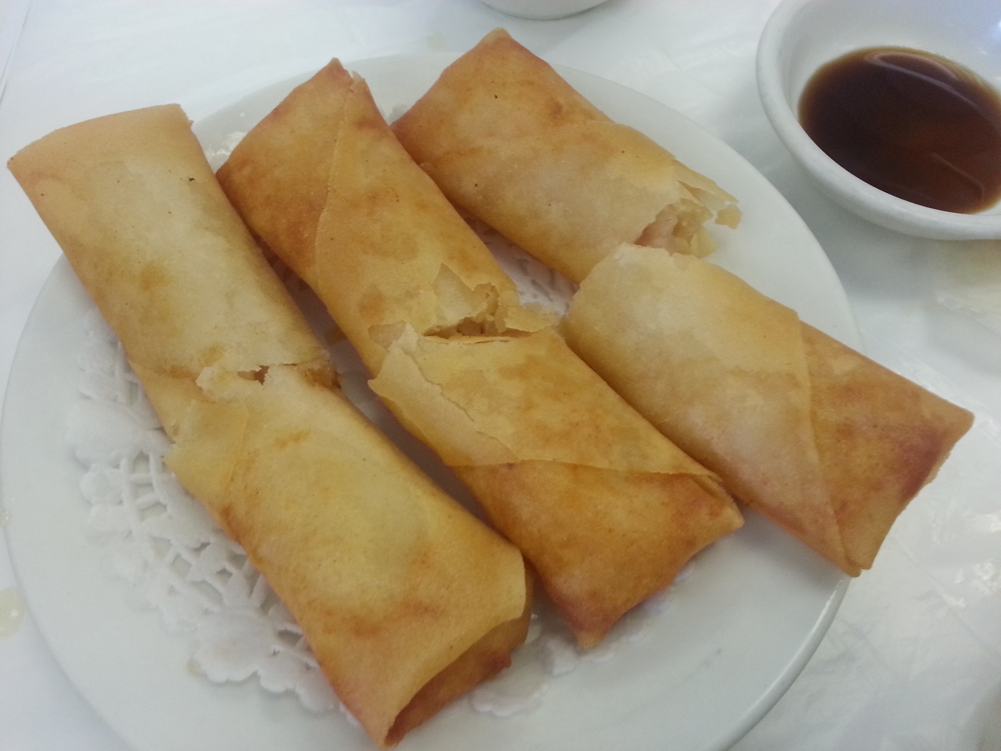 The menu had a lot of your typical dim sum ideas such as the shrimp dumplings (har gow 蝦餃) and pork dumplings (shu mai 燒賣), rice rolls with shrimp, and mini sticky rice rolls, but I was disappointed they didn’t have my ginger/green onion stewed tripe or rice roll with fried chinese donut. They also did not have egg tarts – which is usually a staple at most dim sum restaurants. What was even more disappointing on this visit was that their deep fried milk that I wanted to try was “sold out”.