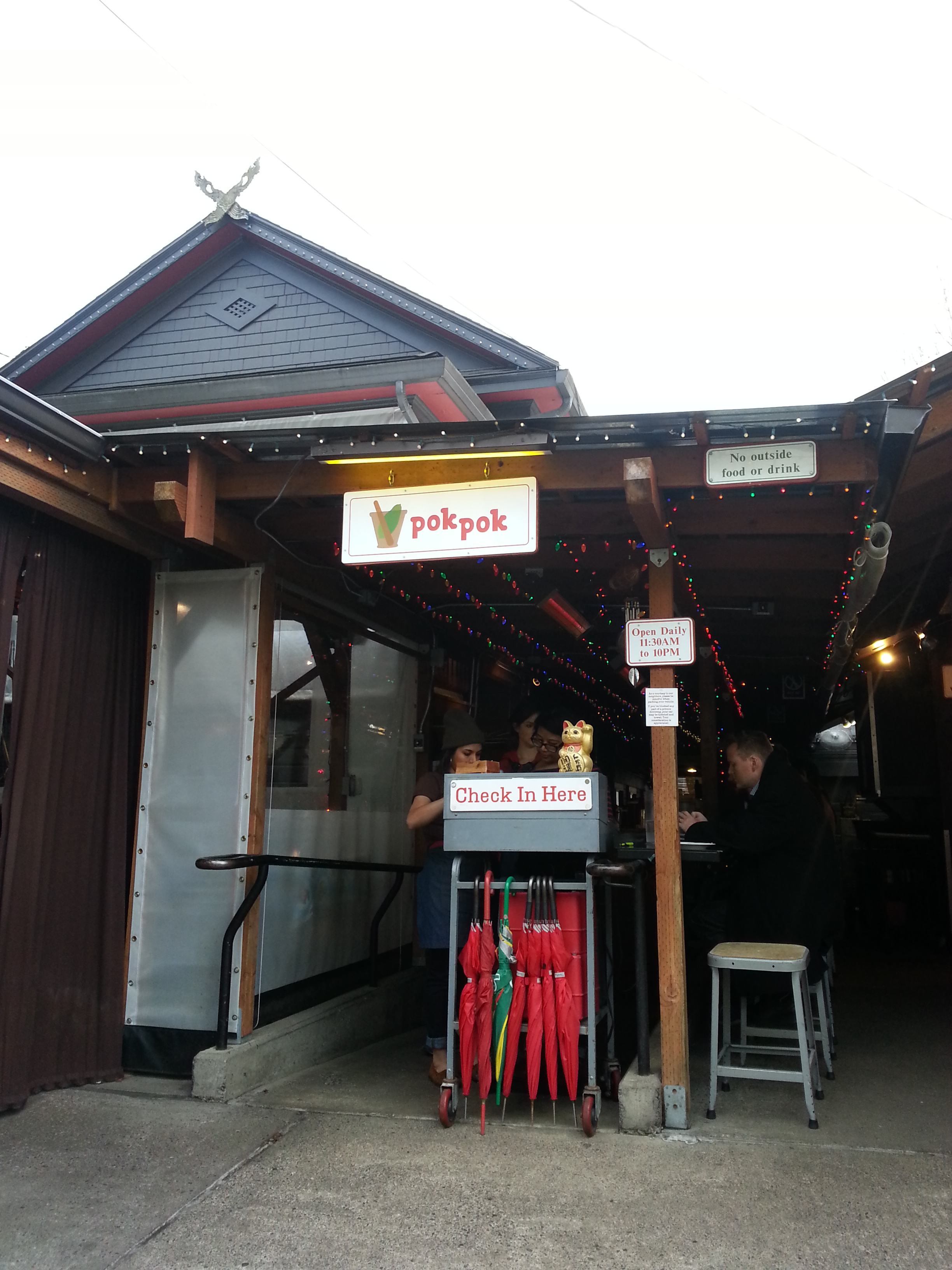 Chef Andy Rickard traveled throughout Thailand to bring Americans the flavors of Thai cuisine by opening up Pok Pok in Portland. My hubby and I came to dine at the acclaimed restaurant in high hopes to trying their famous chicken wings! Part of the Pok Pok reviews also included crazy wait times (one of my friends waited over 3 hours for a seat at the restaurant), packed restaurant crowds, and delicious unique dishes. We arrived at the restaurant around 5:45pm on a Thursday evening, luckily being able to be seated right away with a table for 2 in the back of the restaurant! No wait, no crazy crowds – we were in luck! Note: your whole party must arrive together to be seated, otherwise they wait until everyone is present before seating. There are also no reservations. If there’s a wait, you can enjoy a drink across the street at their other location across the street, Whiskey Soda Lounge, since they will text/call you when your table is ready.
