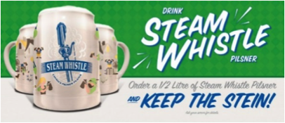 Order a 1/2 liter stein of Steam Whistle Pilsner and keep the stein! Bars across B.C. are joining the celebration by offering the Steam Whistle Oktoberfest ceramic steins from September 20th through October, while quantities last. Some bars are featuring a “Stein Re-fill” option.